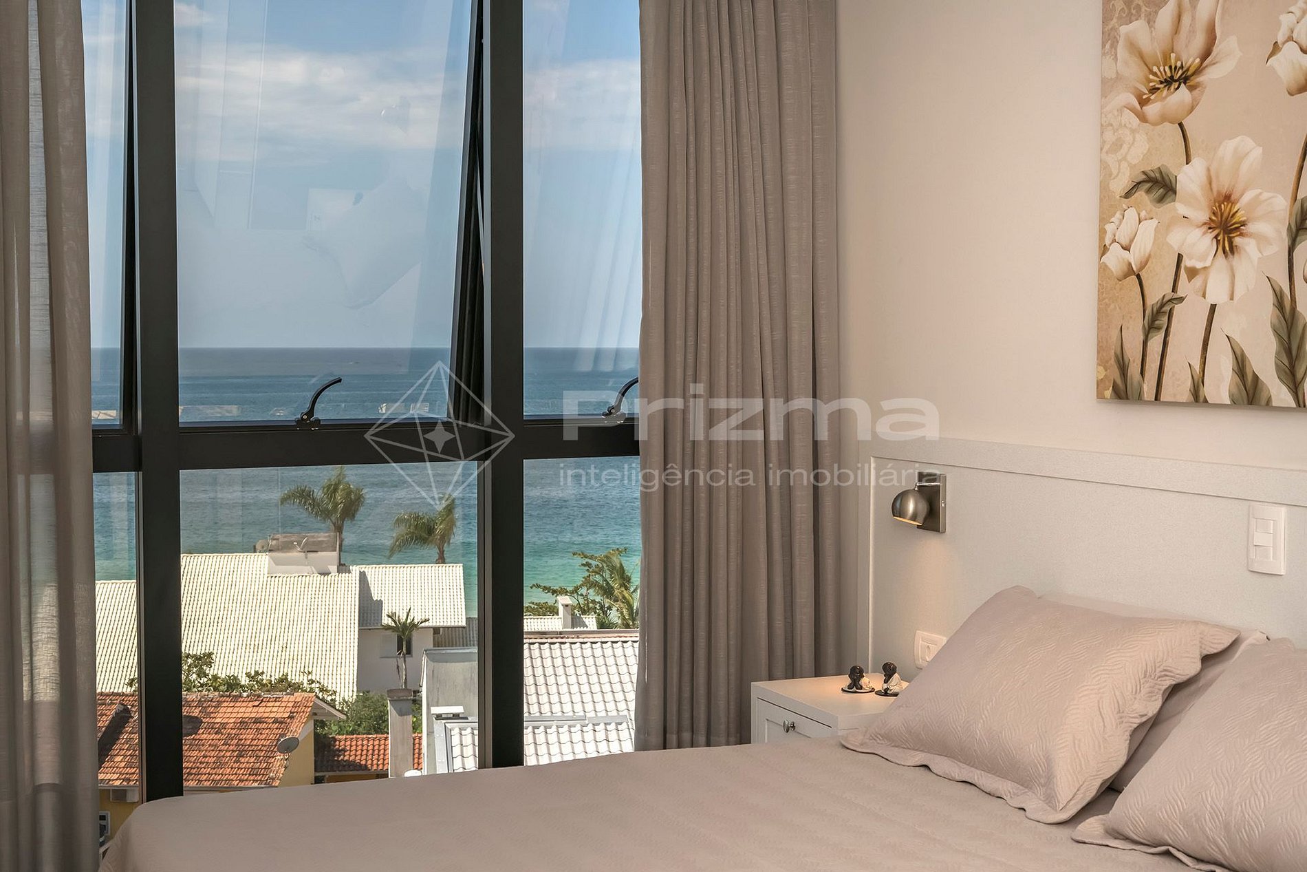 -Quarto 02: Suíte com cama de casal, ar condicionado e vista mar;