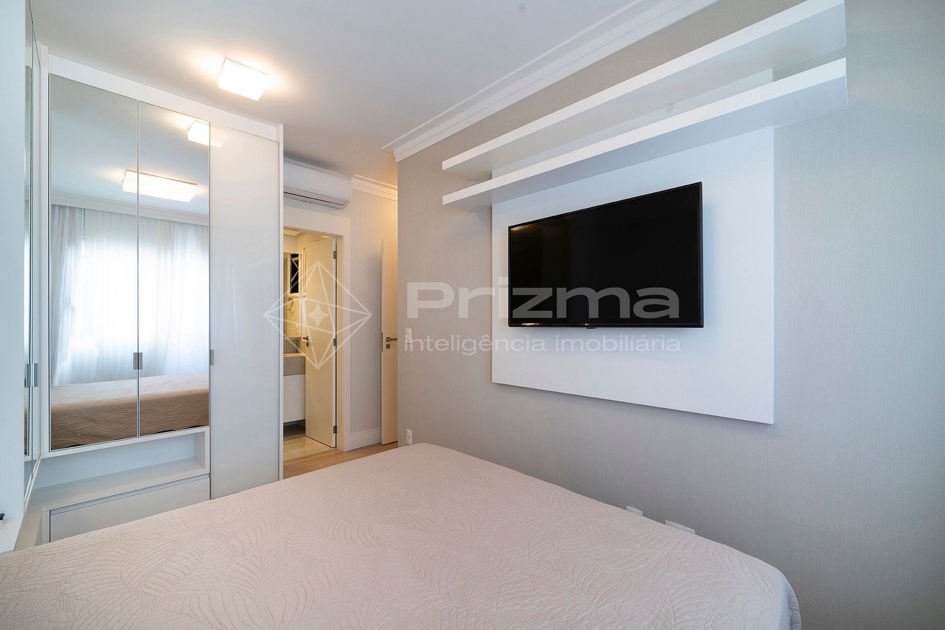 -Quarto 01: Suíte com cama queen size, TV e ar condicionado;