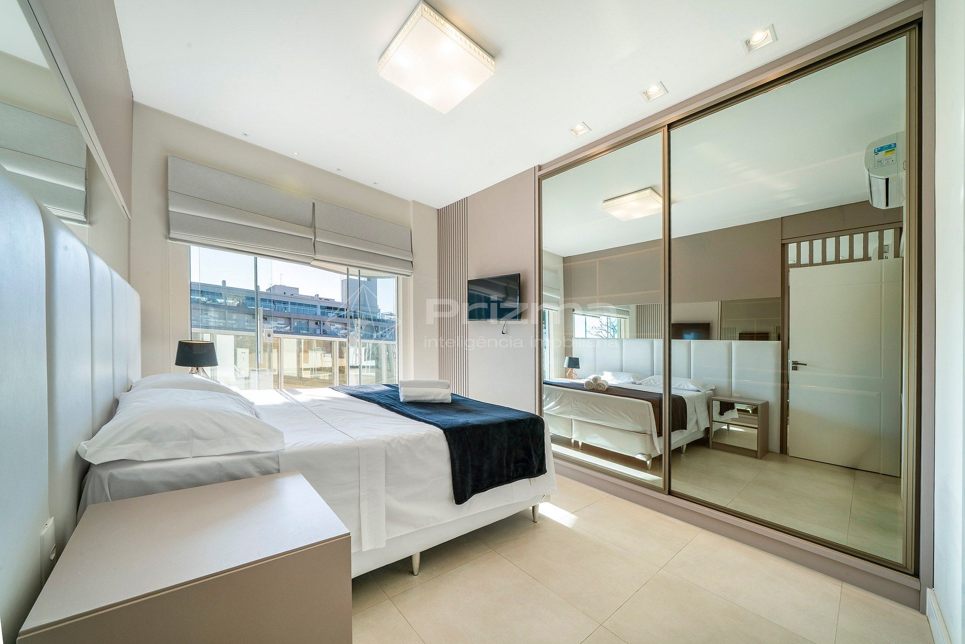 -Quarto 01: Suíte com cama queen size, TV e ar condicionado;
