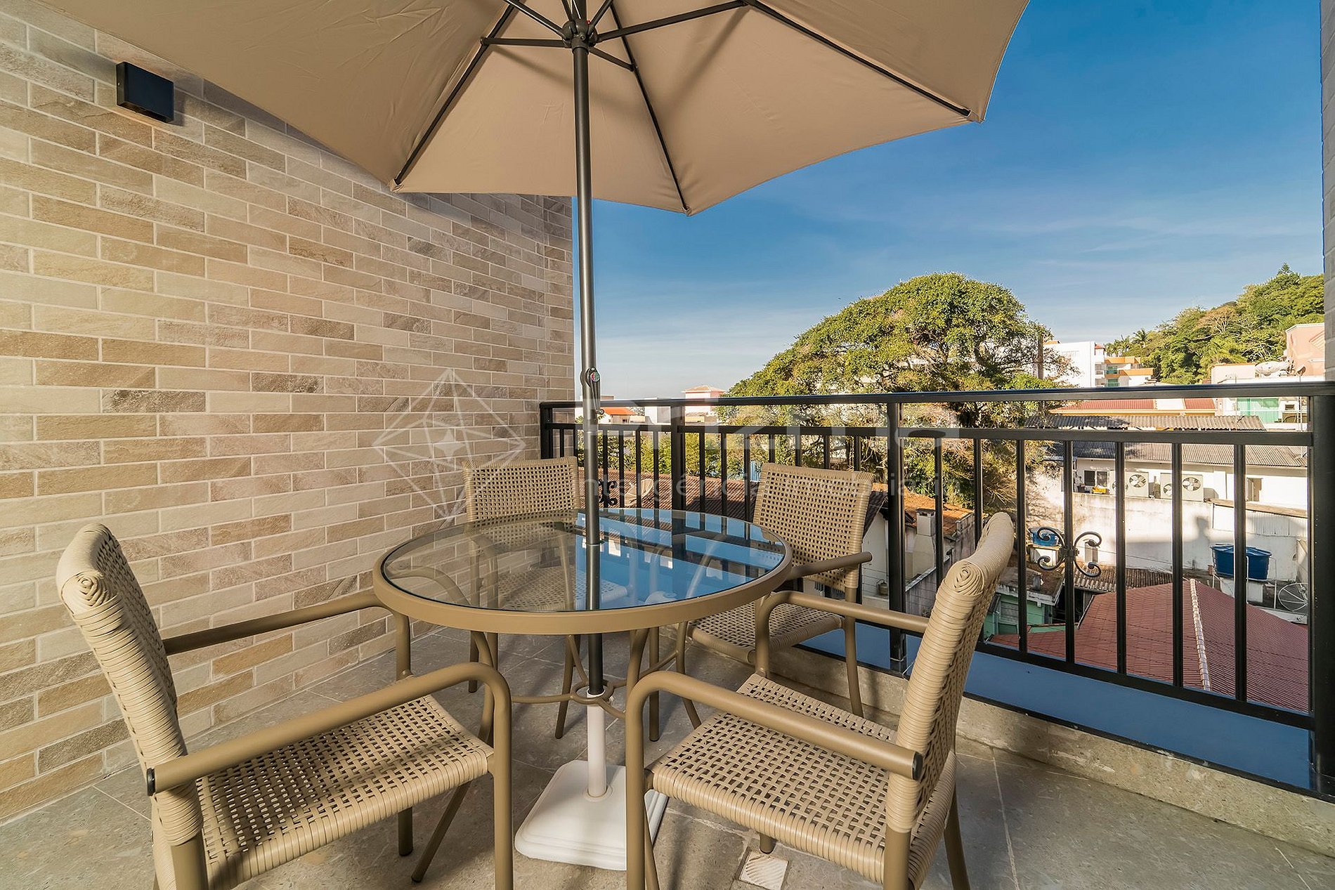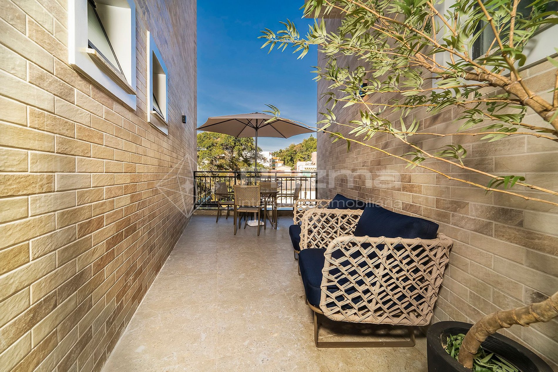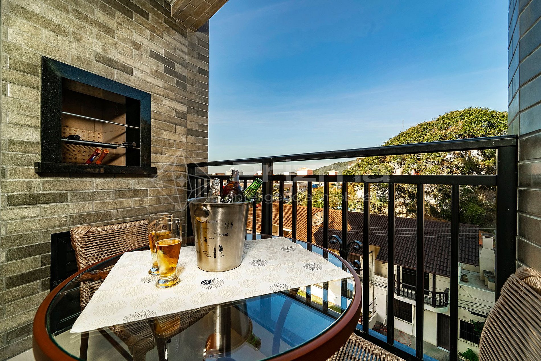 Balcón con vista lateral y parrilla a carbón;