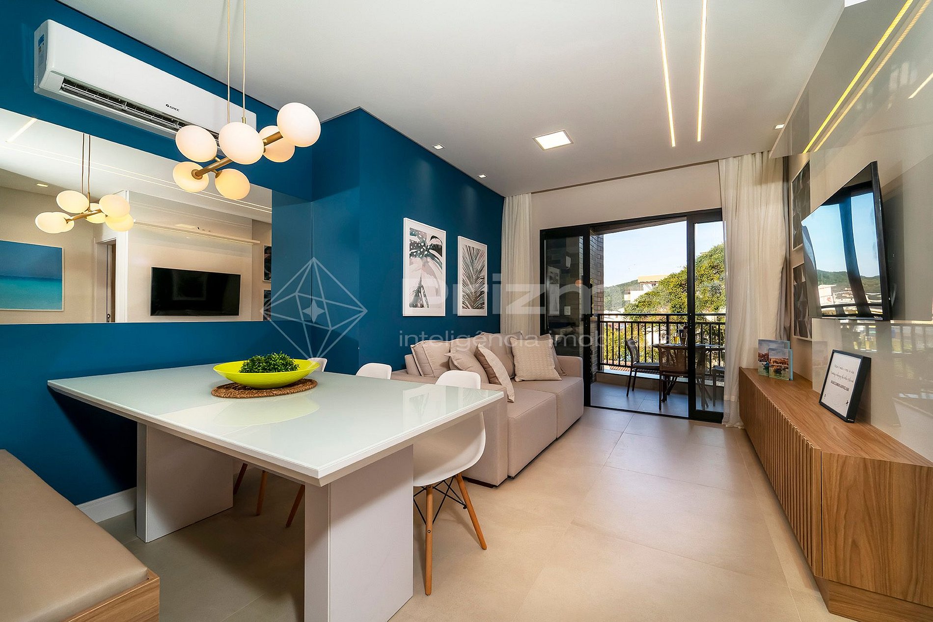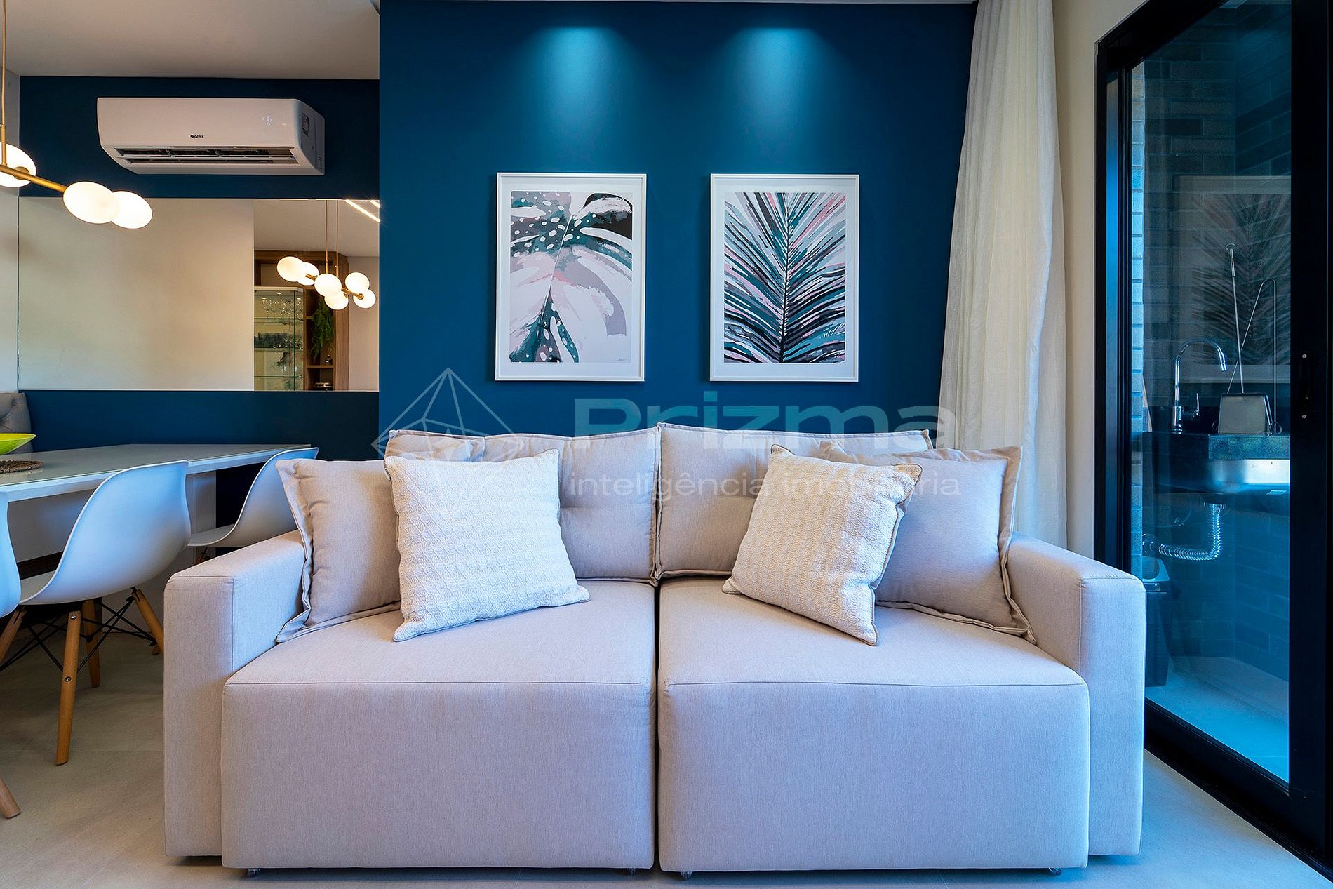 Sala de estar con TV y aire acondicionado;