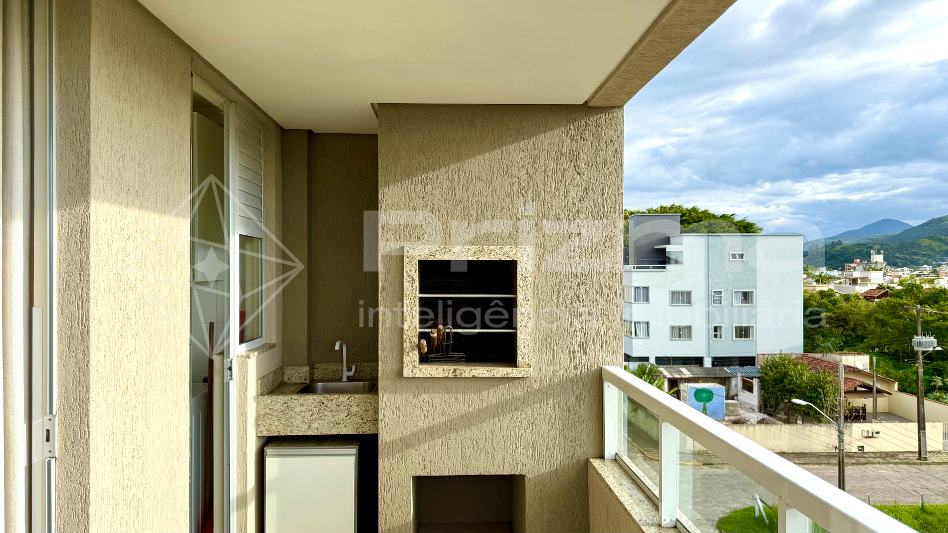 -Ampla sacada com churrasqueira a carvão;