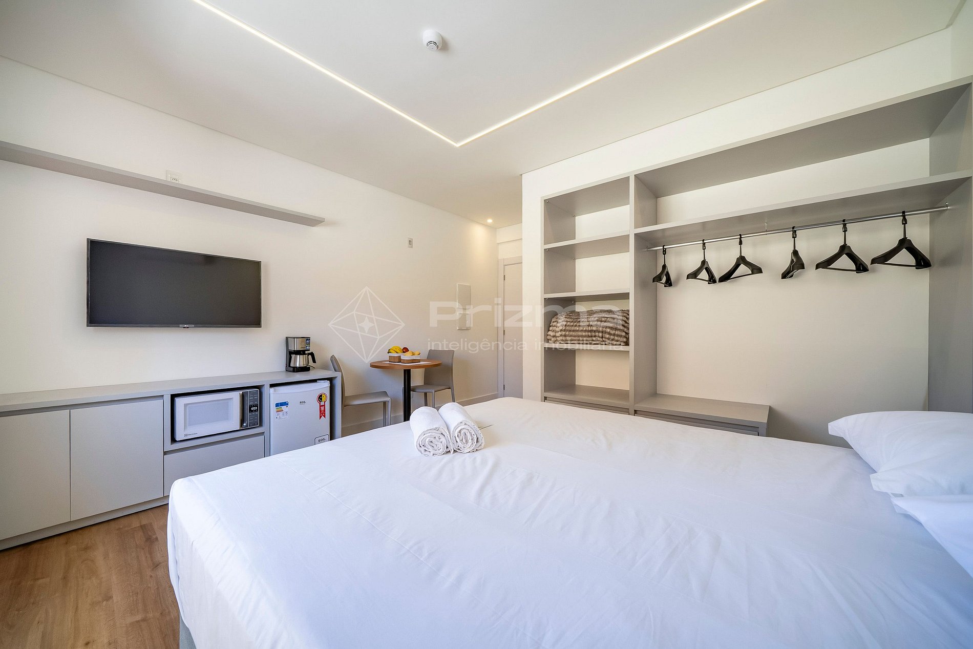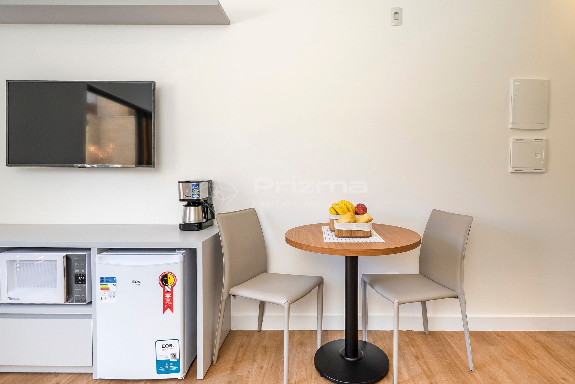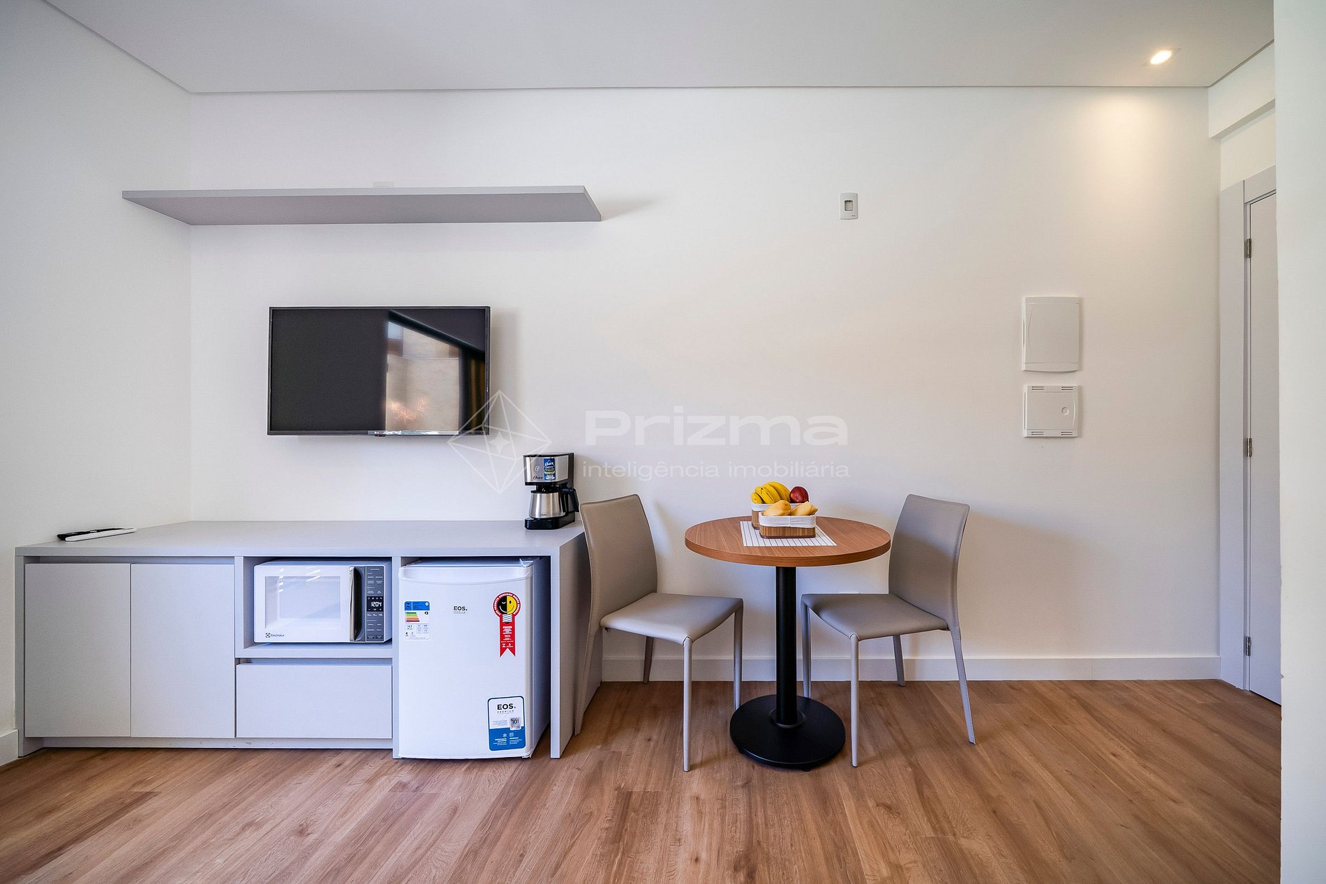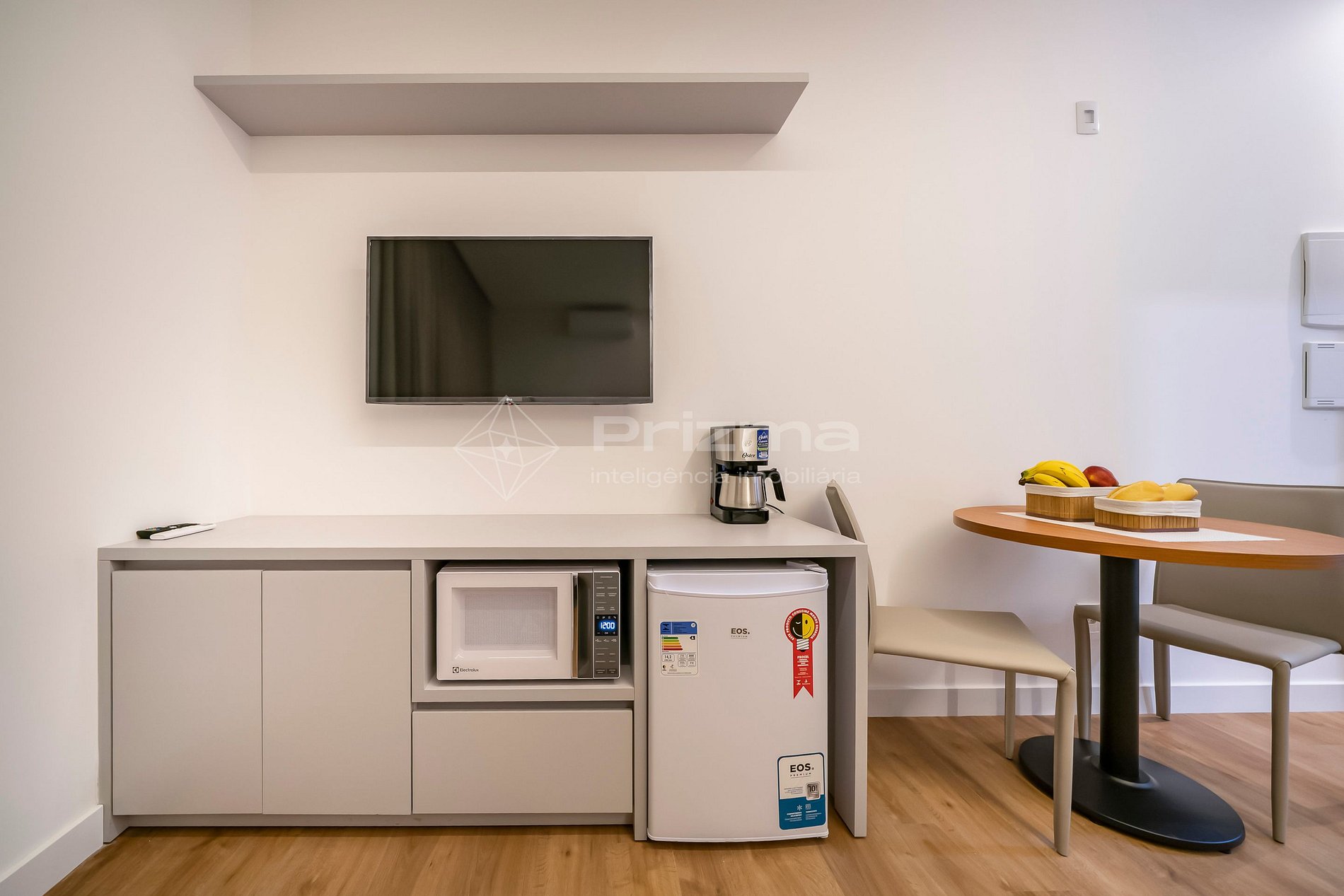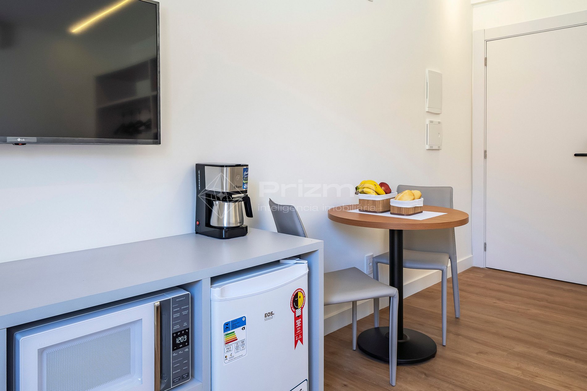 -Frigobar, chaleira elétrica, microondas e cafeteira;
