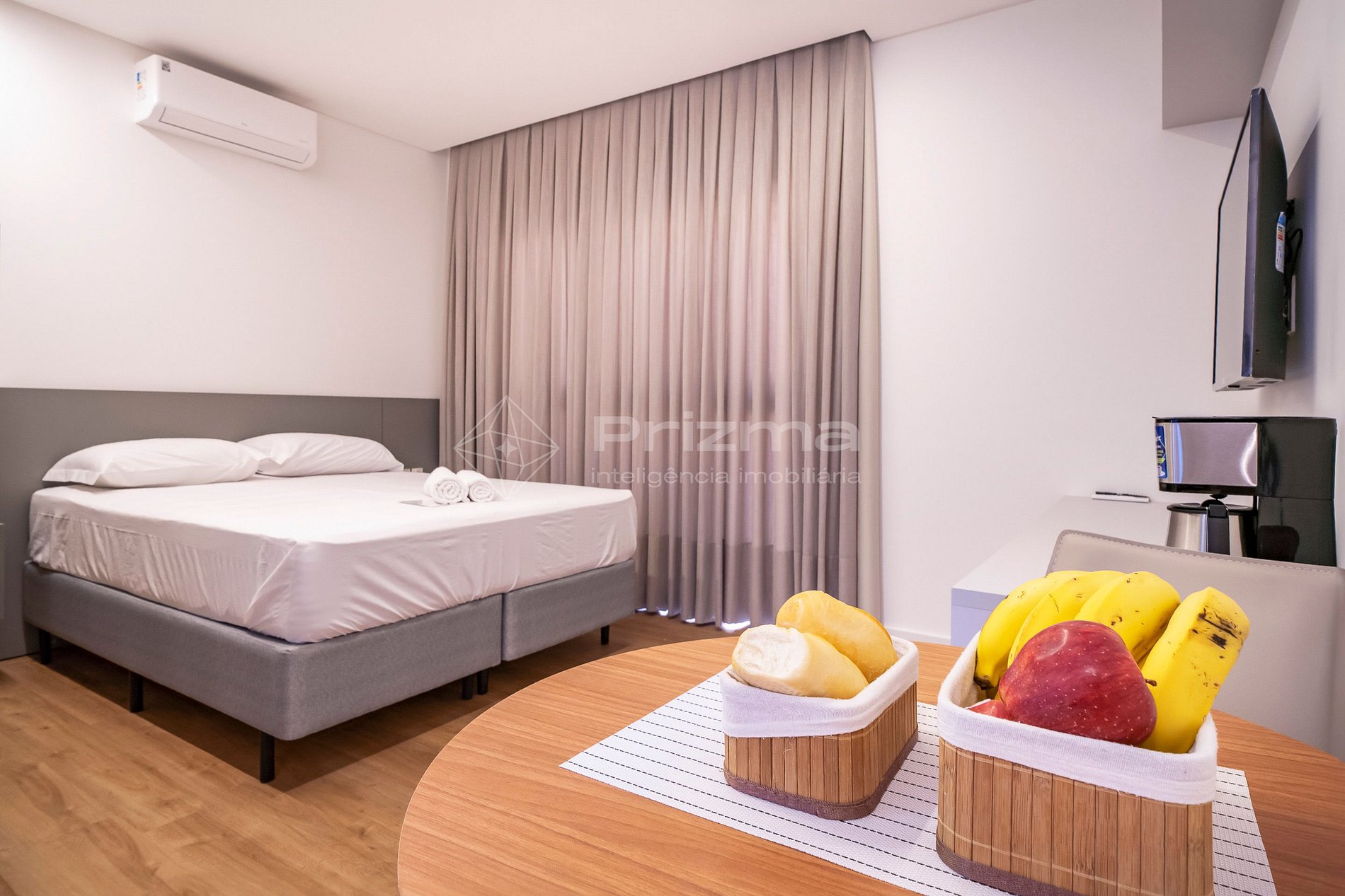 -Ambiente climatizado com ar-condicionado, TV smart e WI-fi;
