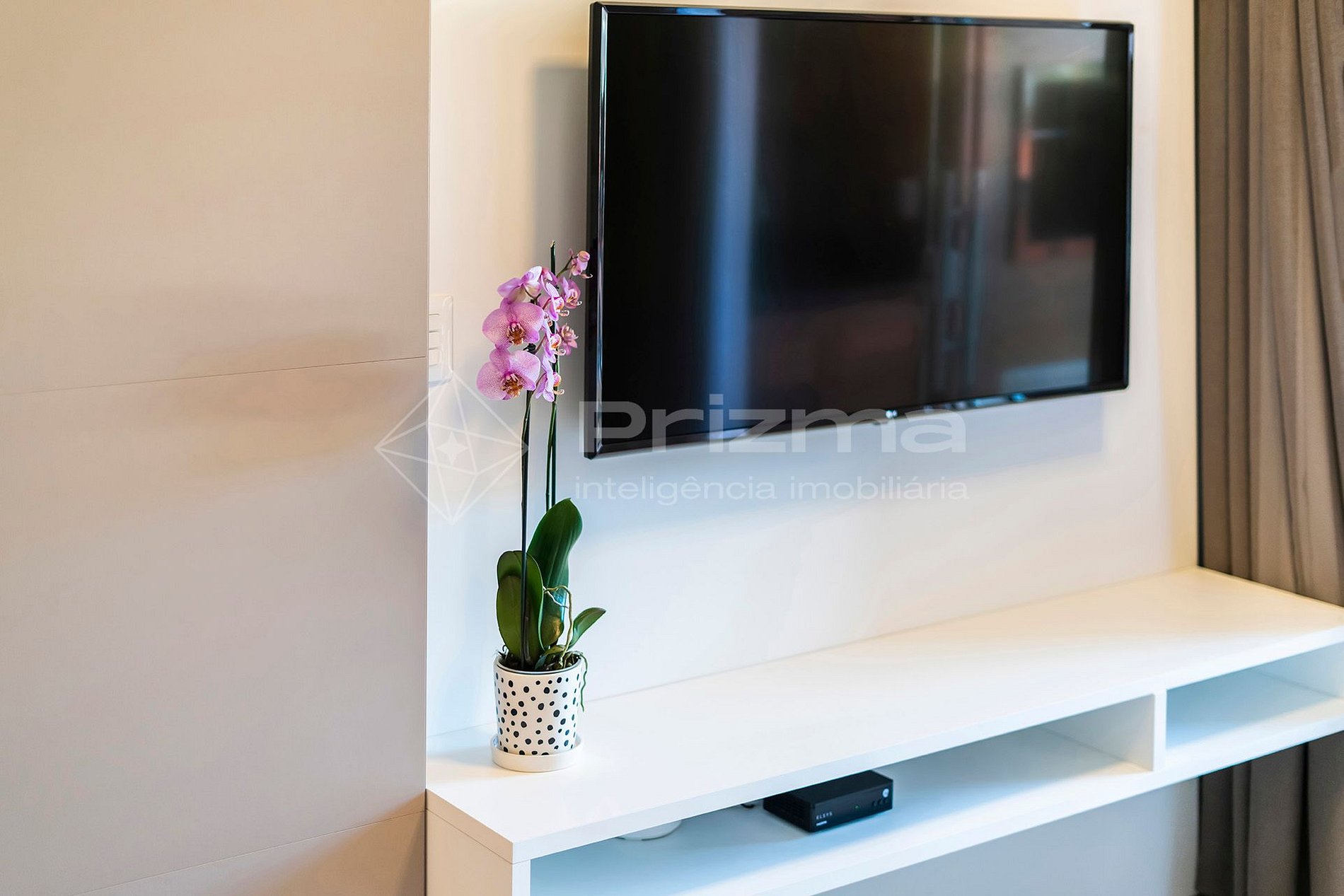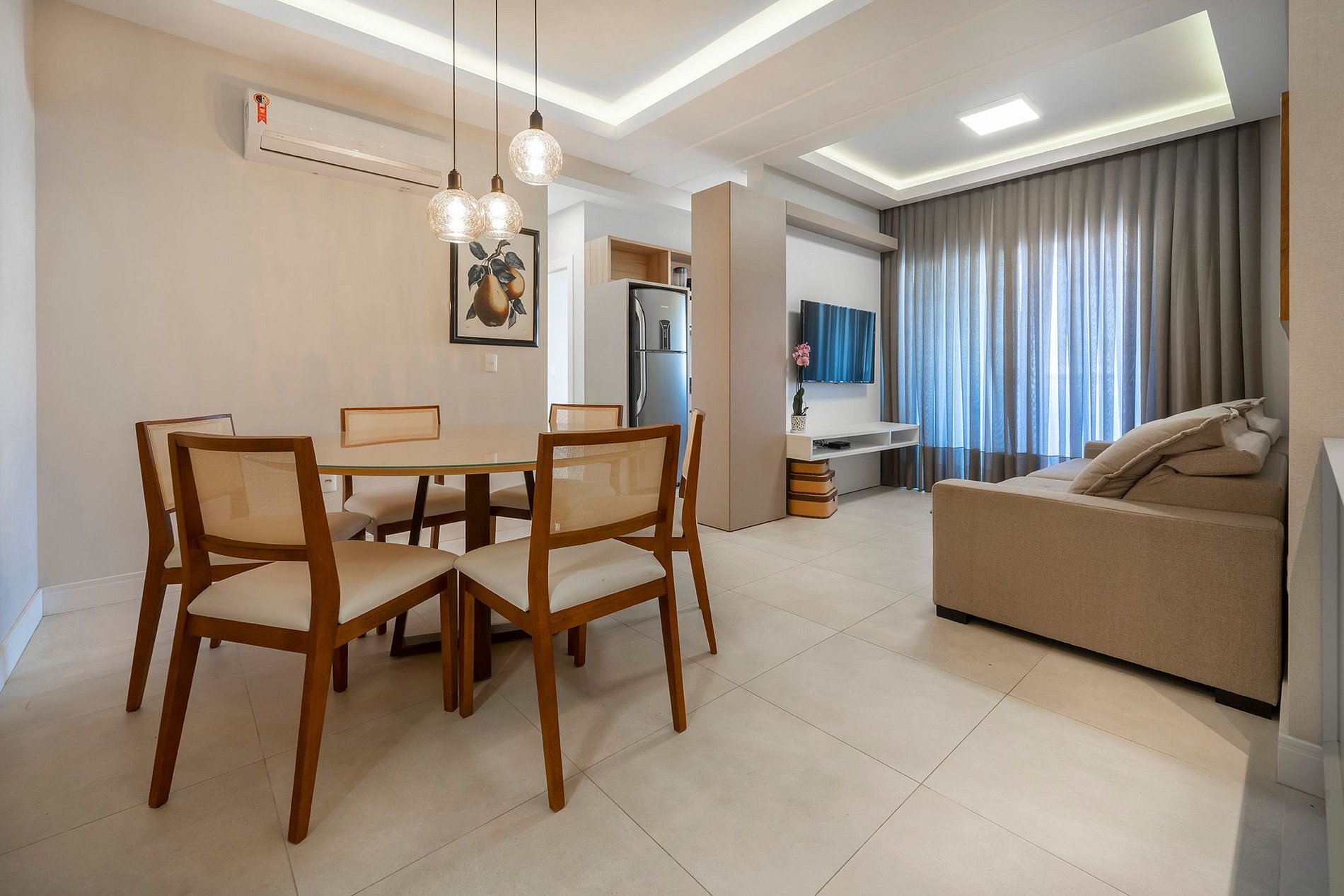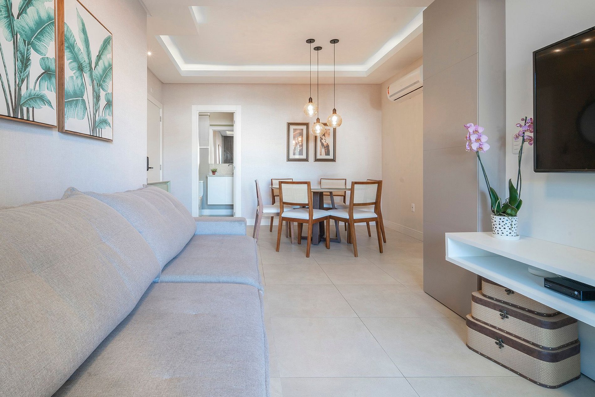 -Sala de estar com TV, ar condicionado e sofá;