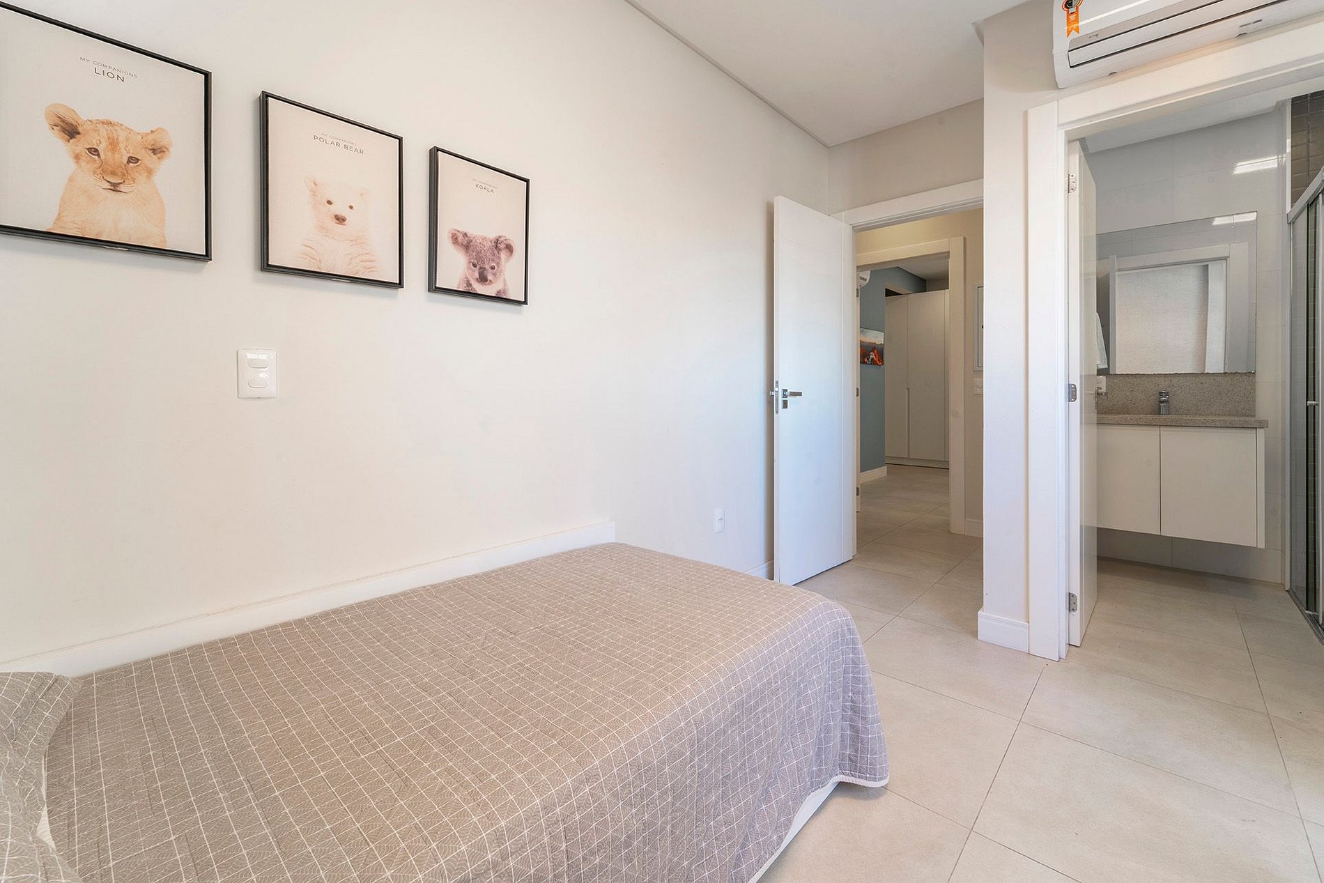 -Quarto 01: Suíte com cama queen size, TV e ar condicionado;