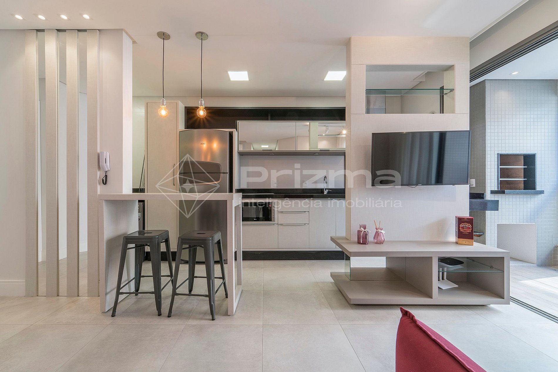 -Sala de estar e jantar integradas com TV smart, ar condicionado e WI-FI;