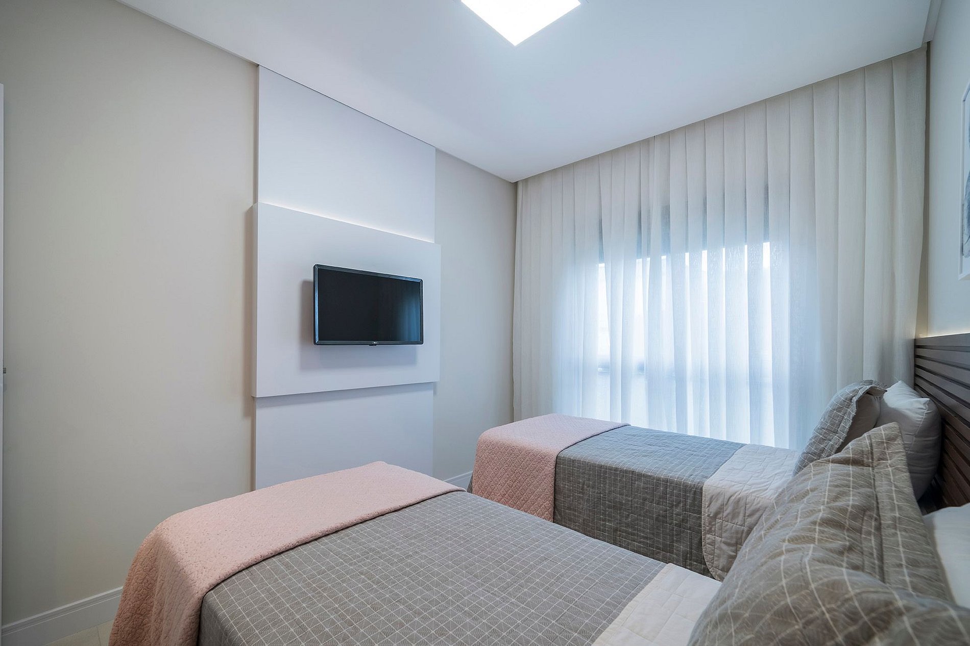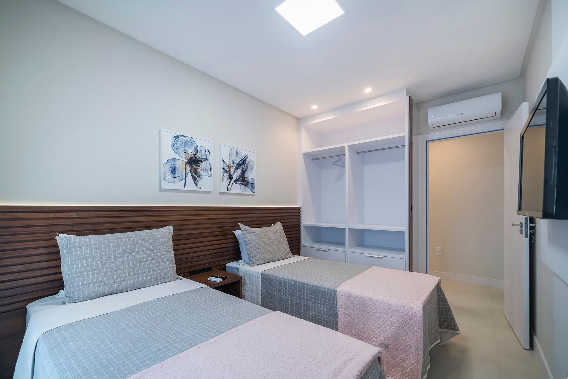 -Quarto 02: Quarto com duas camas de solteiro +01 cama auxiliar de solteiro, TV e ar condicionado;