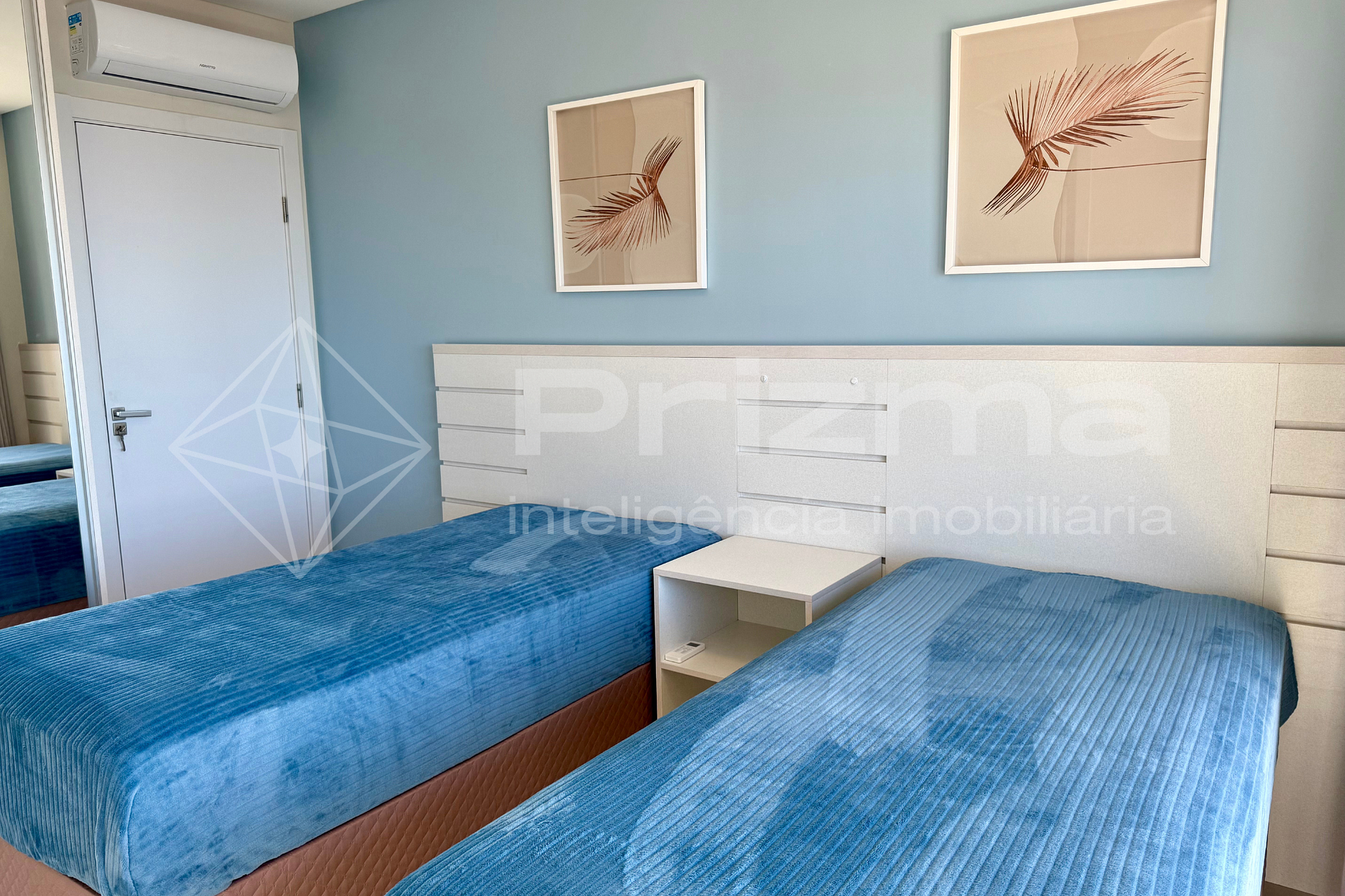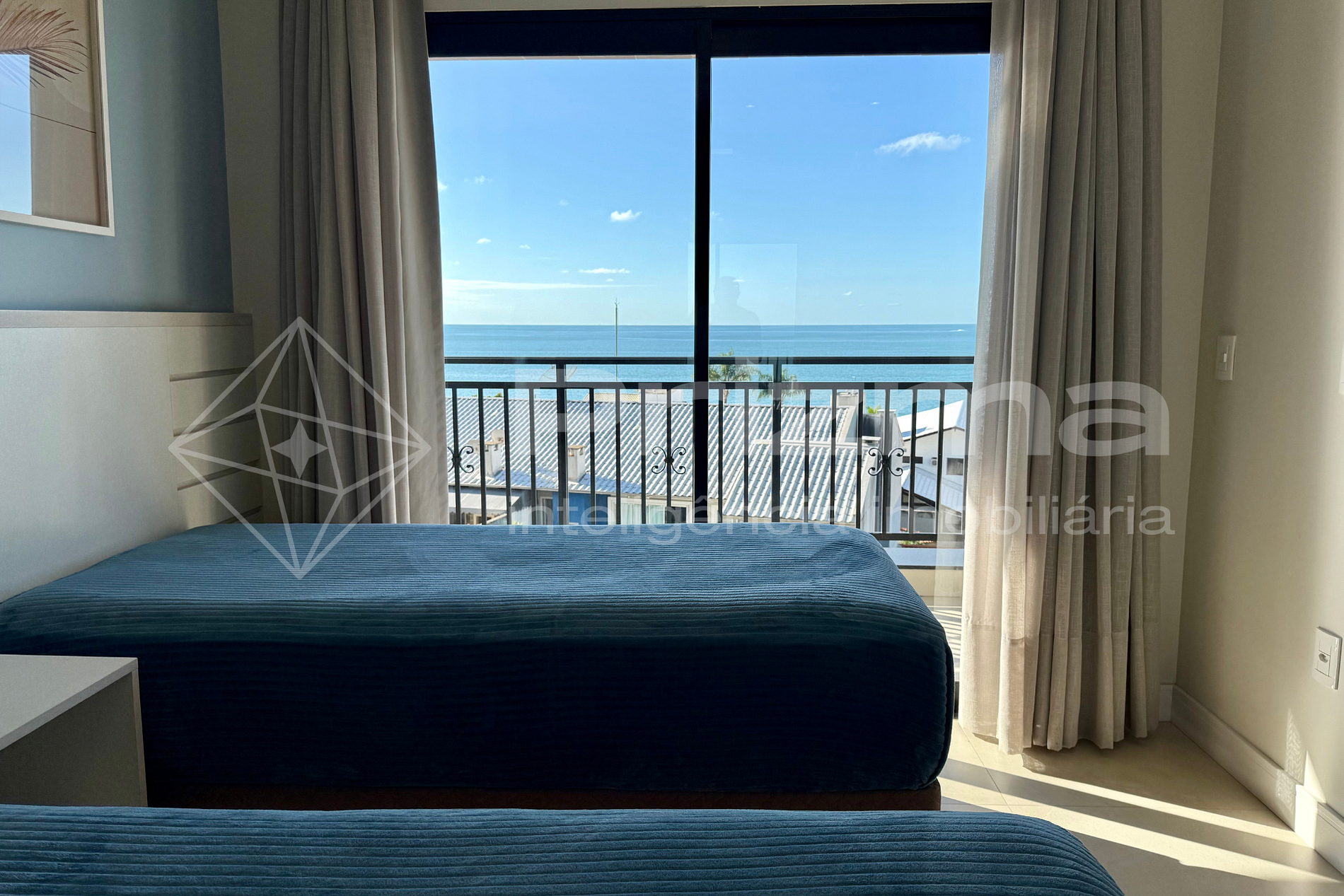 -Quarto 02: Suíte com duas camas de solteiro, 01 colchão de solteiro, ar condicionado e vista mar;