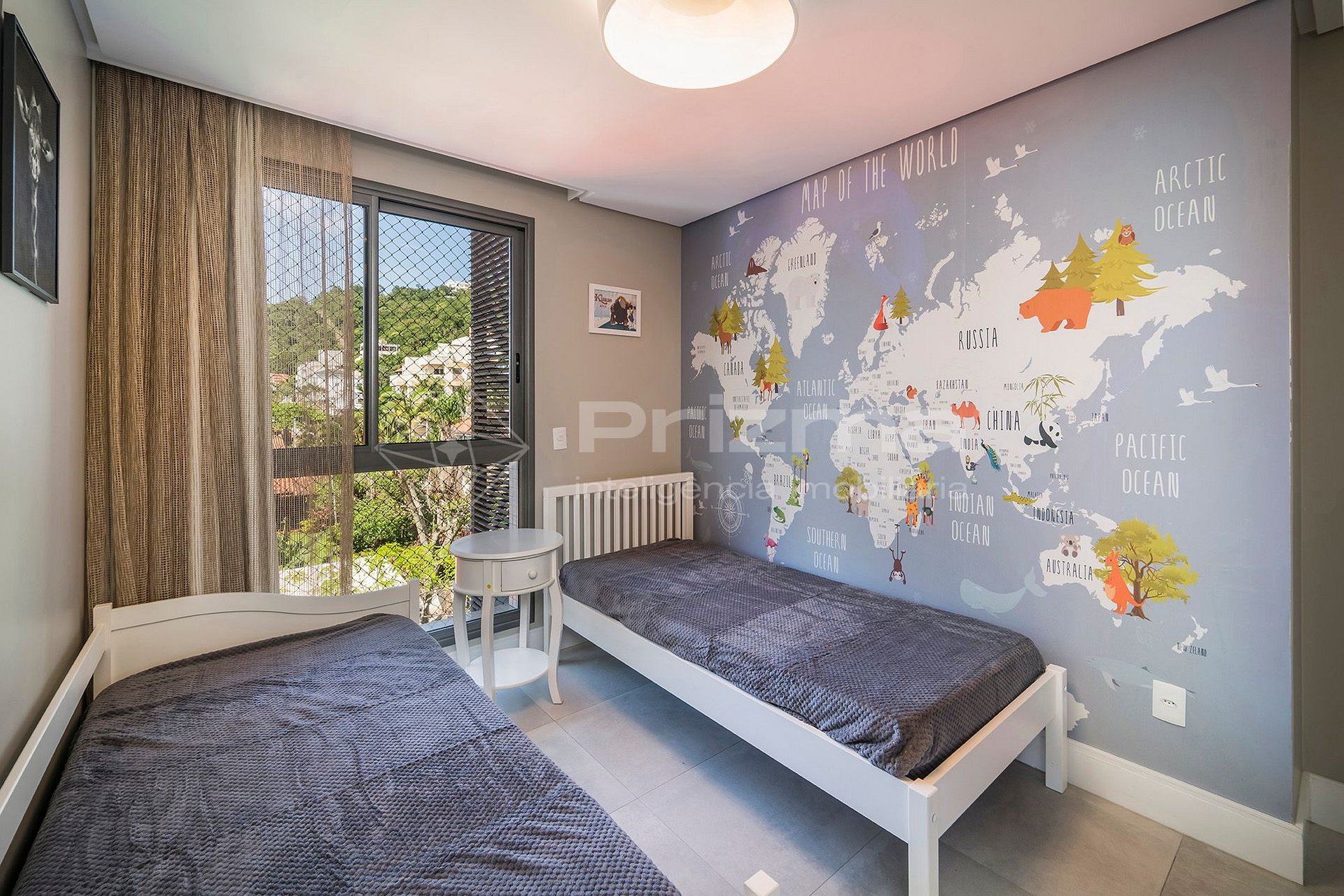 3 quartos sendo, 1 suíte com cama de casal, 1 quarto com cama de casal, 1 quarto com 3 camas de solteiro.