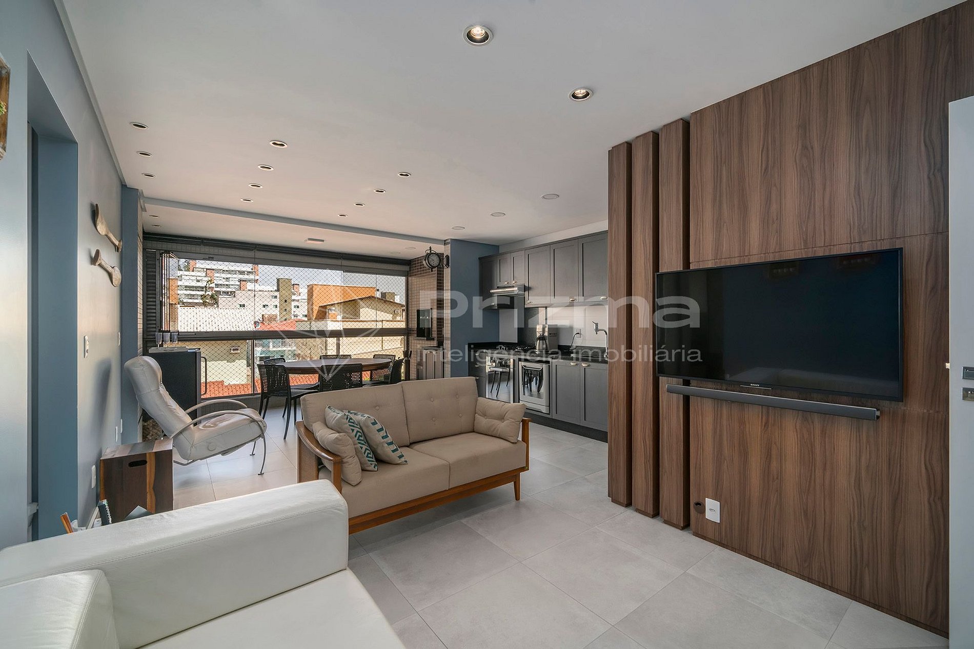 Cozinha completa, equipada e integrada a área de serviço com máquina lava e seca, sala de estar e jantar integradas, sacada com churrasqueira.
