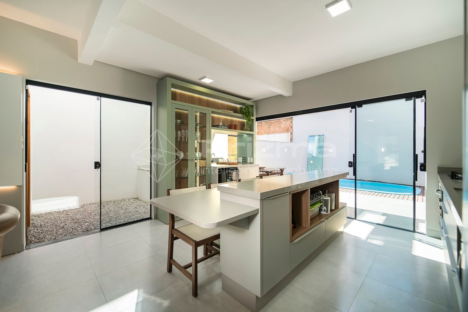 -Sala de jantar com uma bancada e 06 cadeiras;