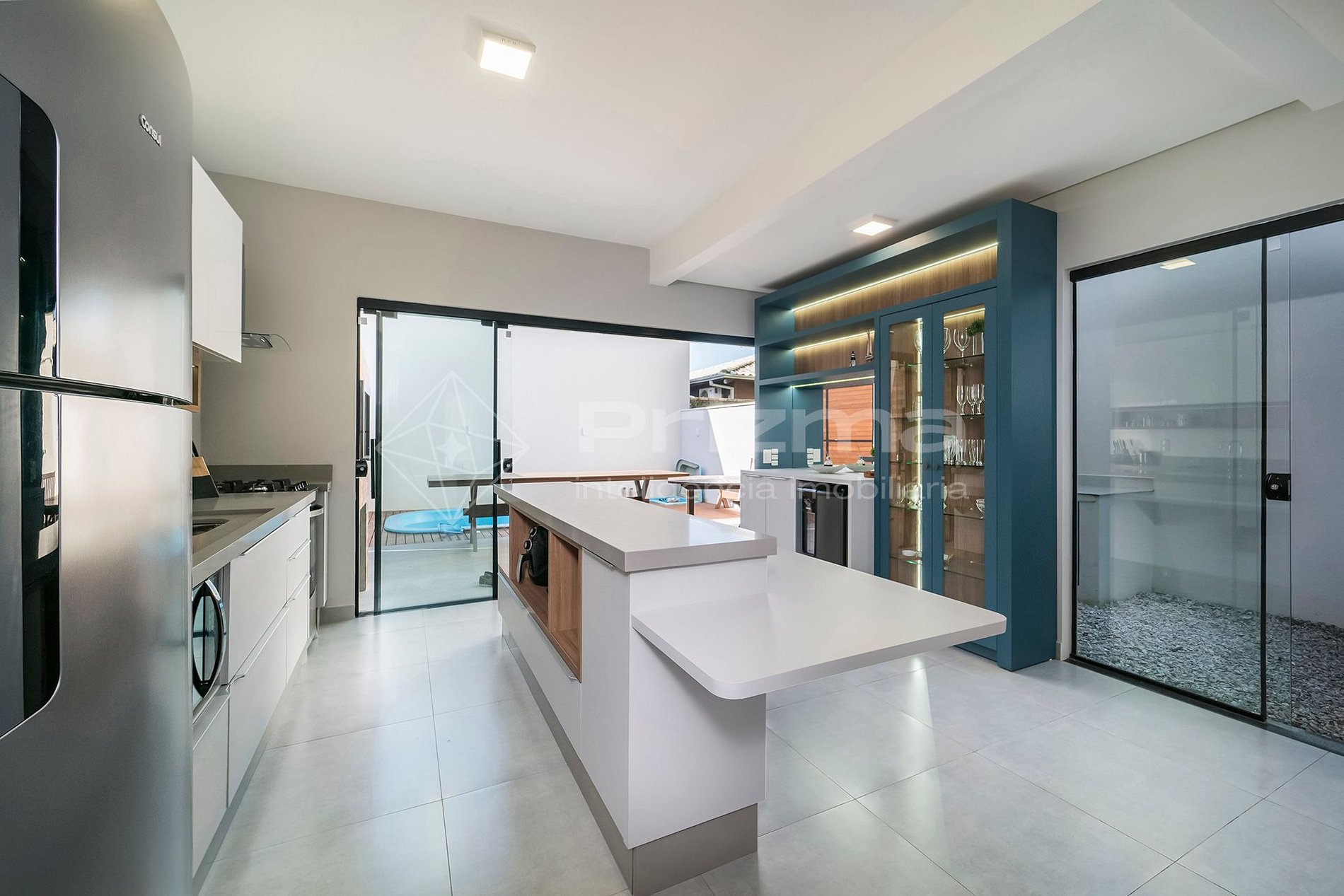 -Sala de jantar com uma bancada e 06 cadeiras;