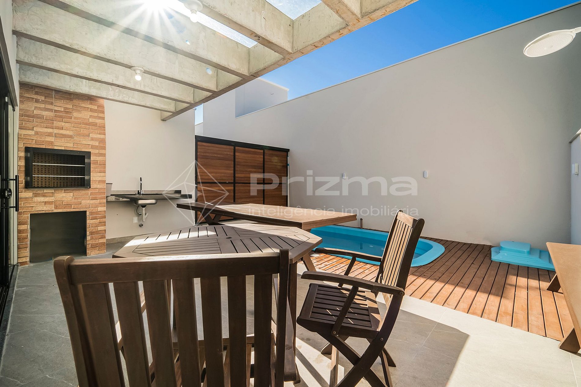 -Varanda com churrasqueira a carvão, piscina privativa e lavabo;
