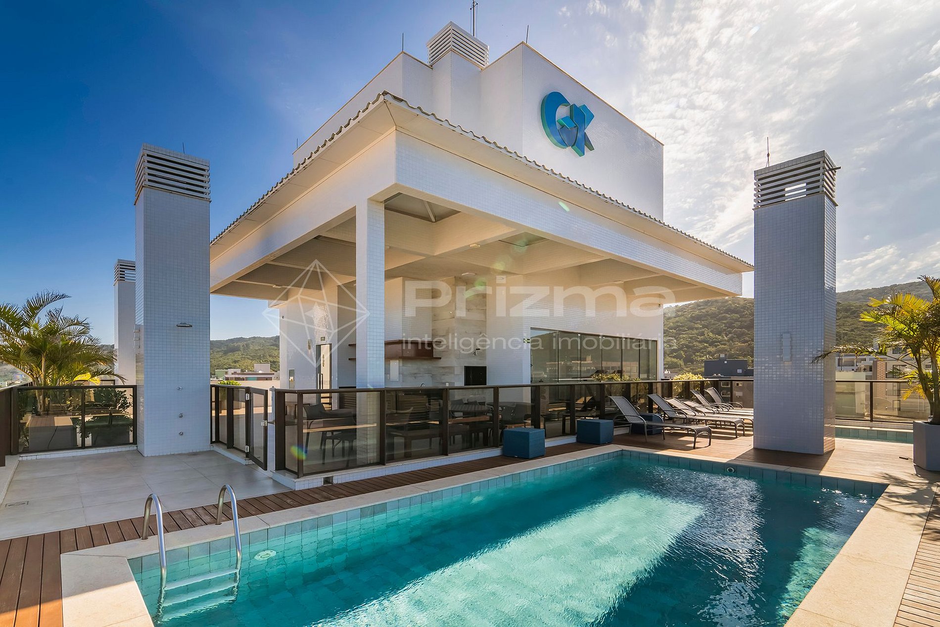 O condomínio conta com um espaço Rooftop com piscina com uma vista incrível e academia.