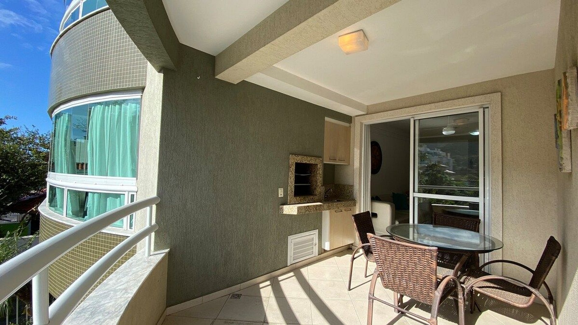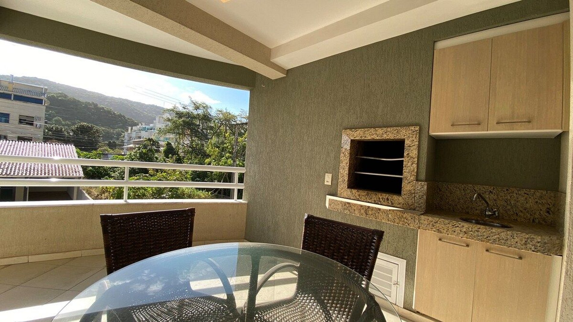 -Ampla sacada fechada com sistema reiki e com churrasqueira a carvão.