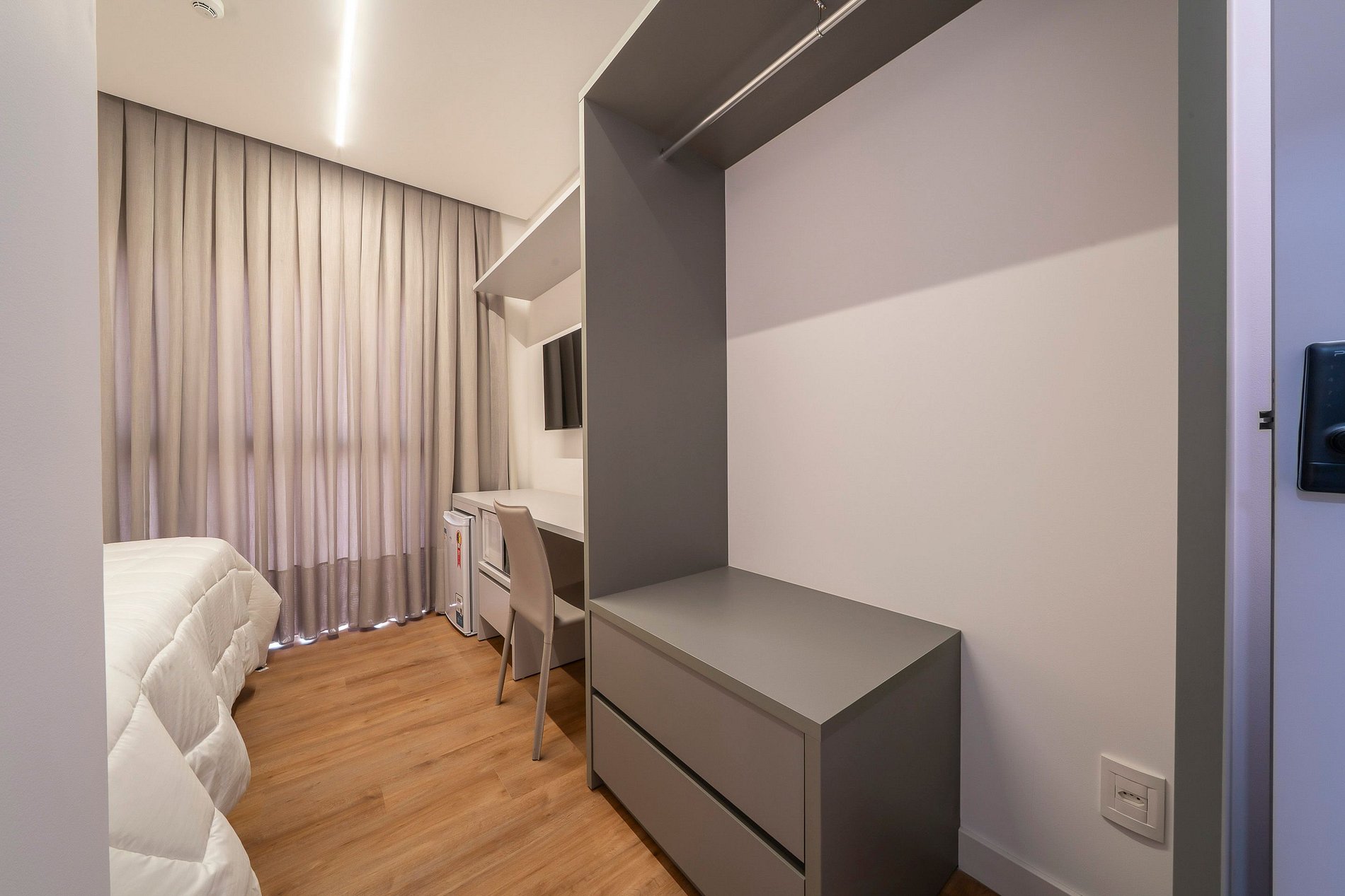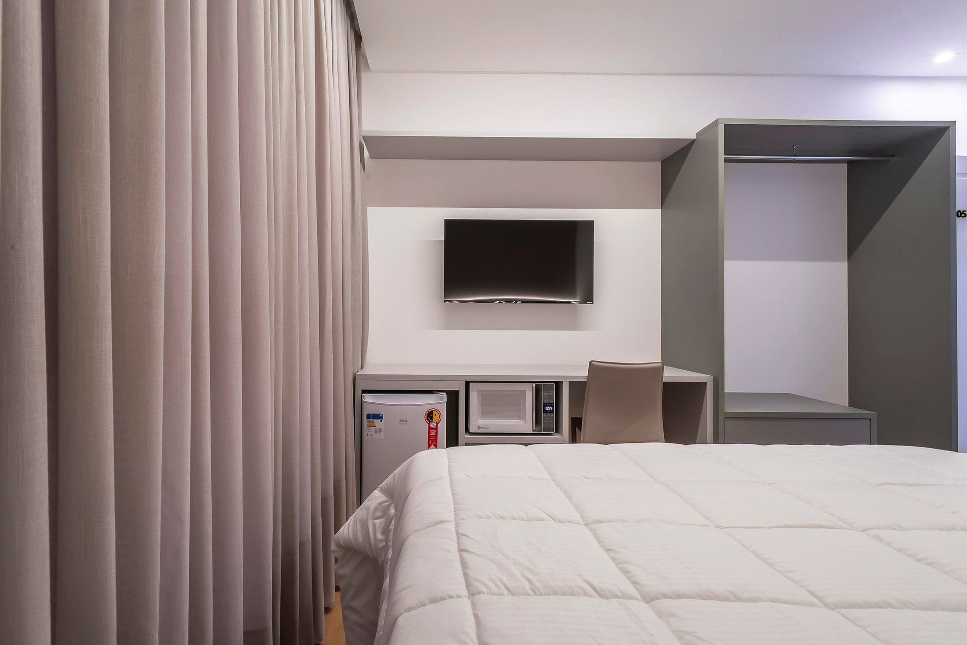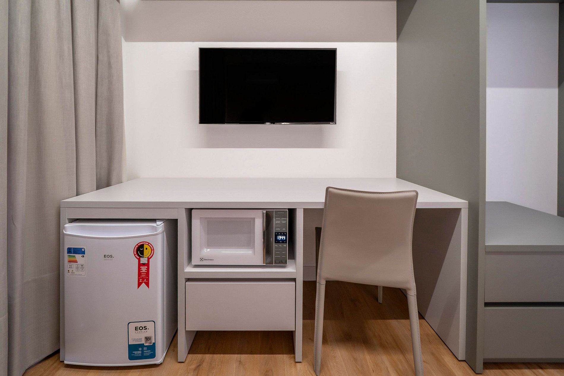 -Frigobar, chaleira elétrica e microondas;