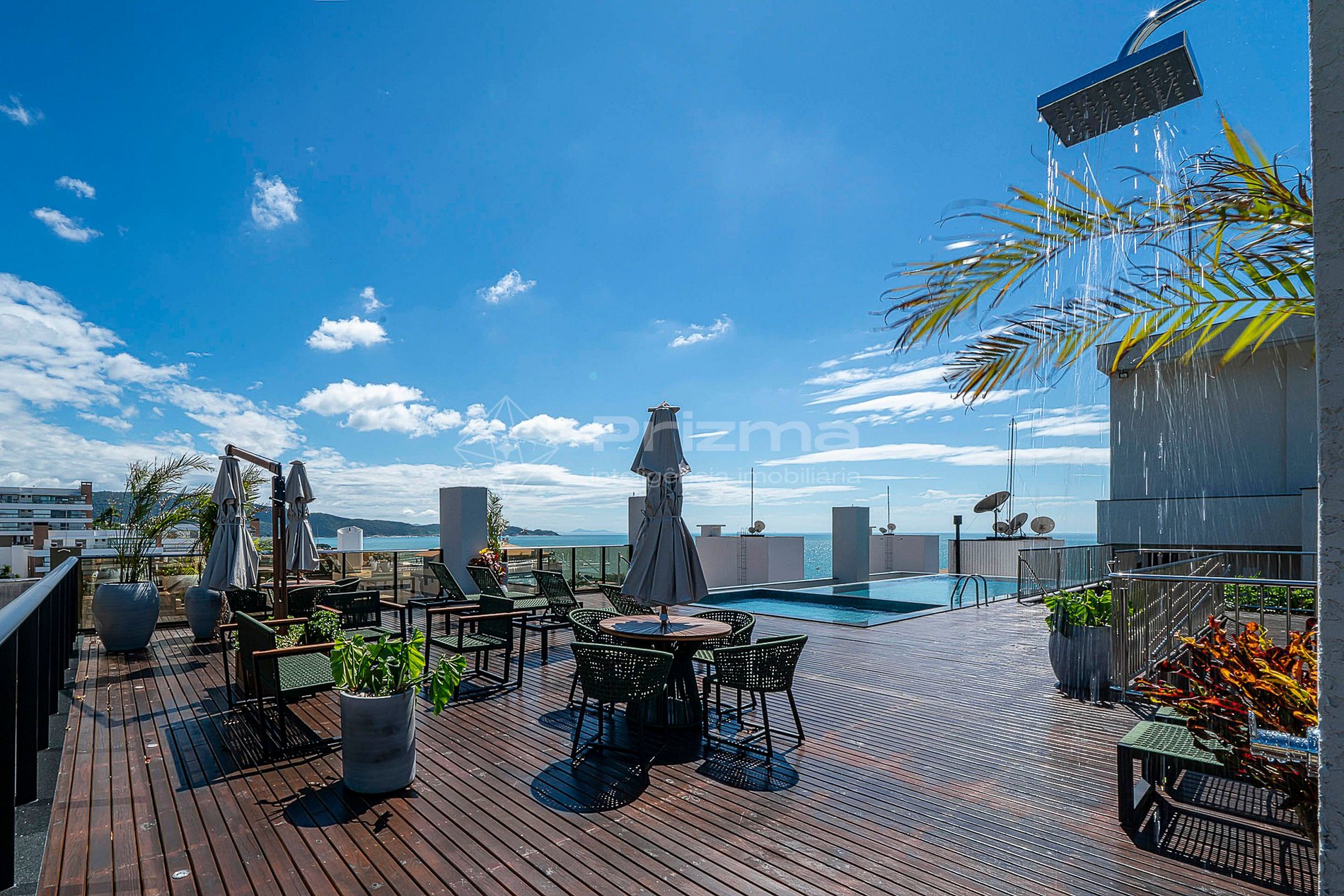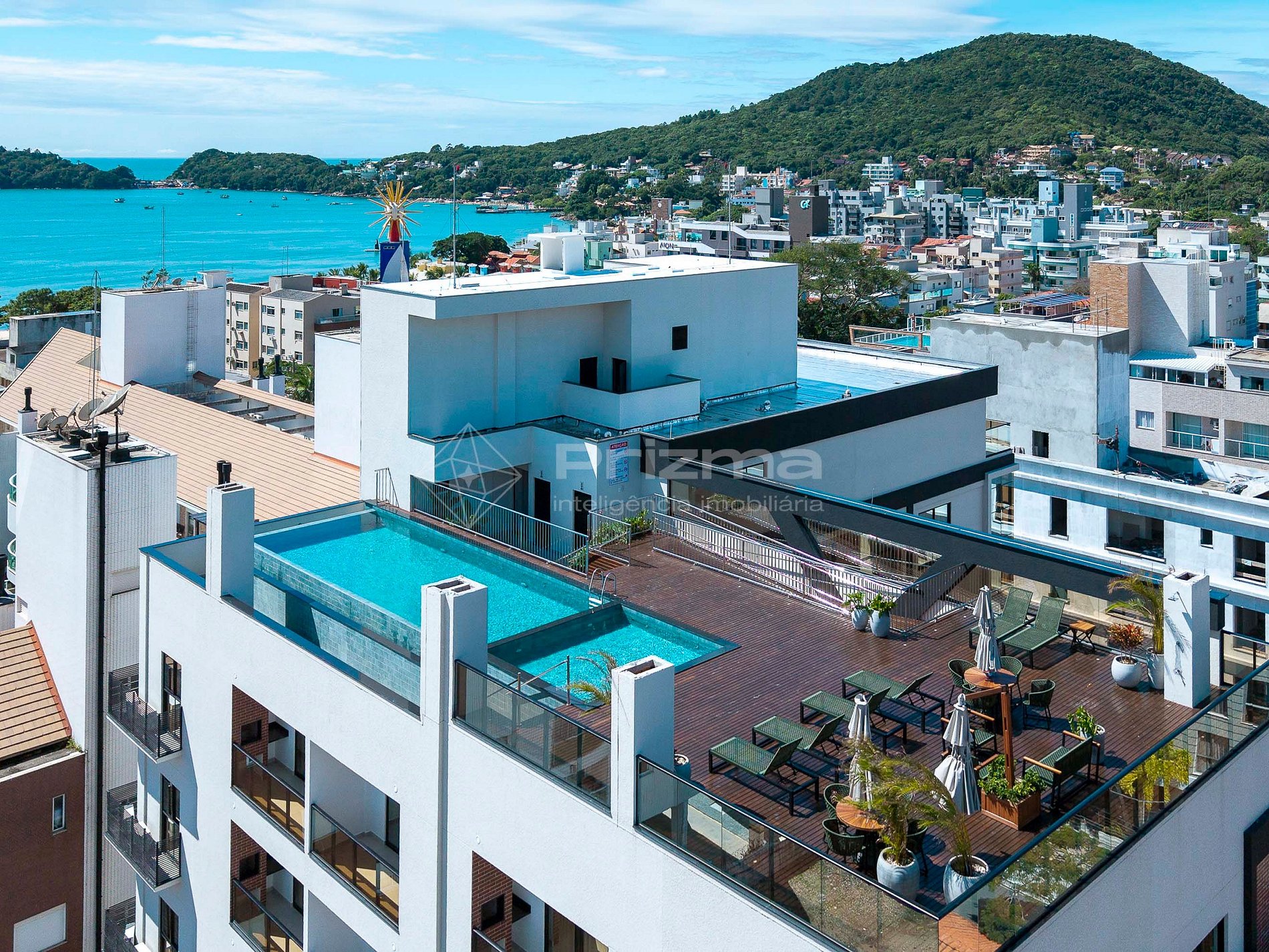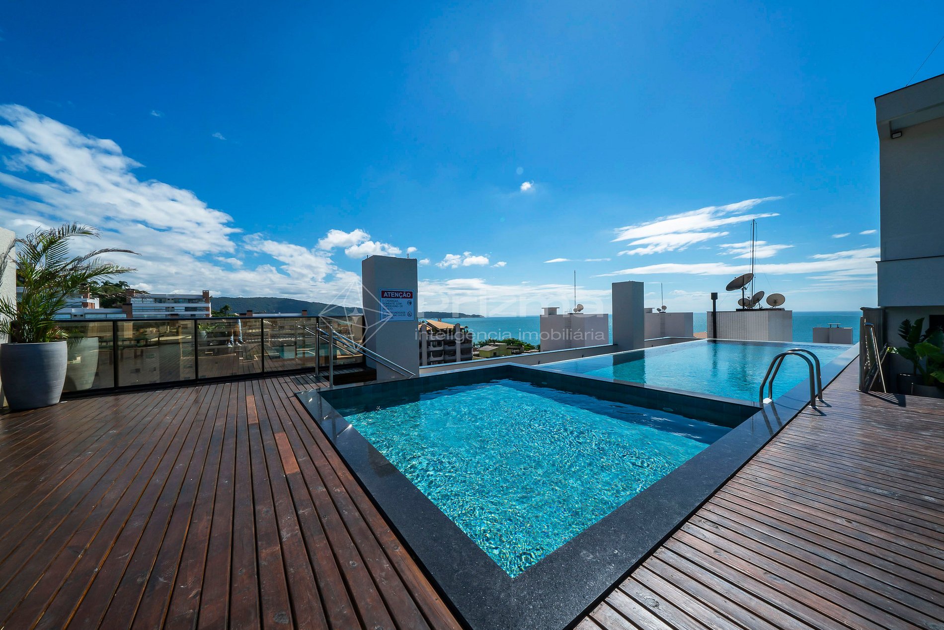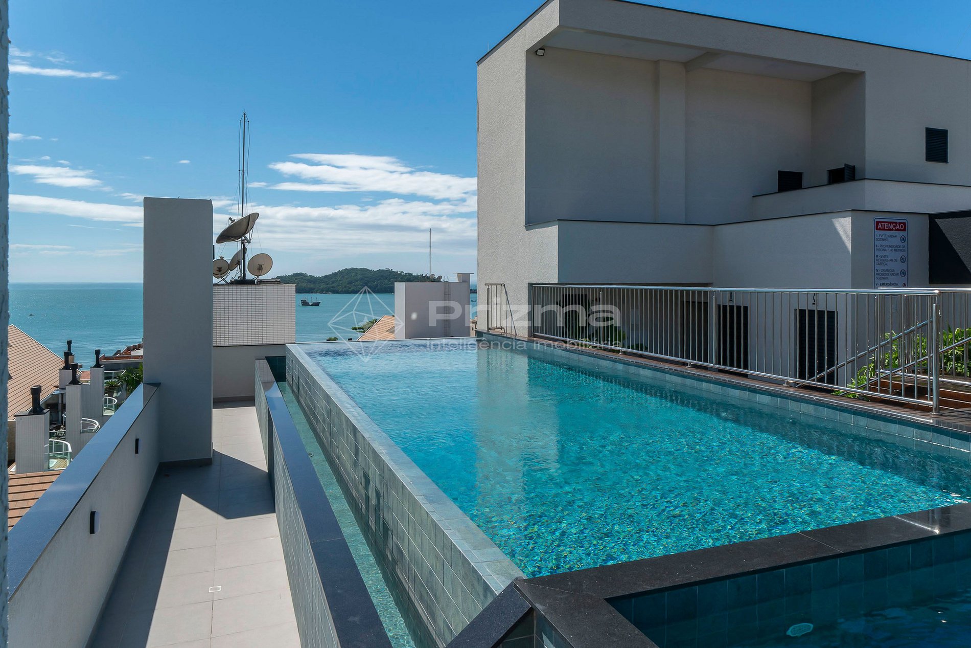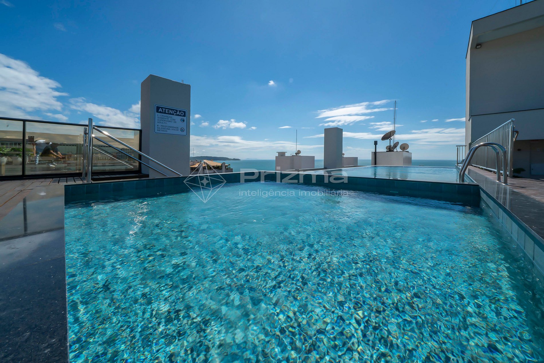 -Piscina de borda infinita na cobertura com vista para o mar;