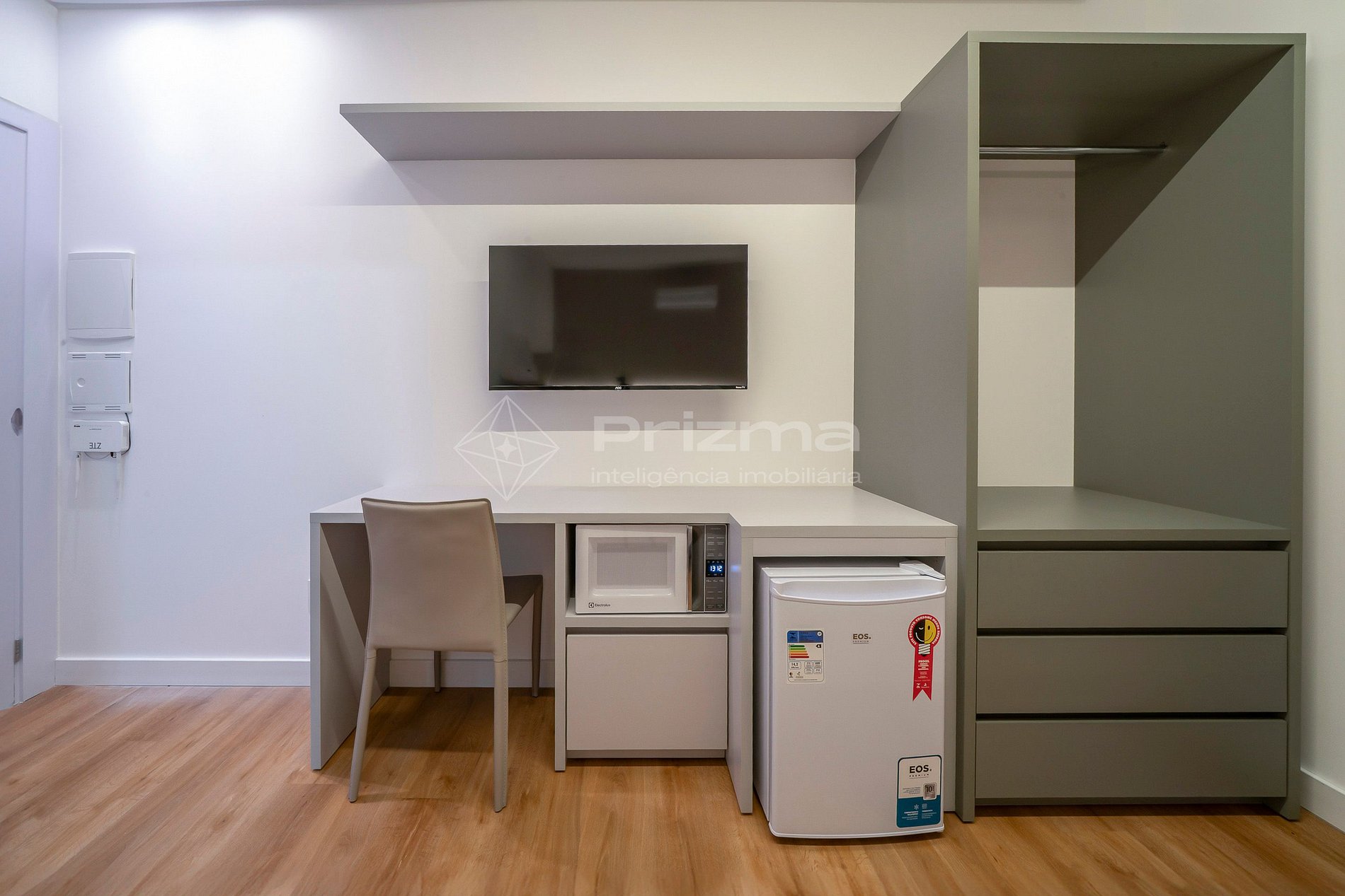 -Frigobar, chaleira elétrica e microondas;