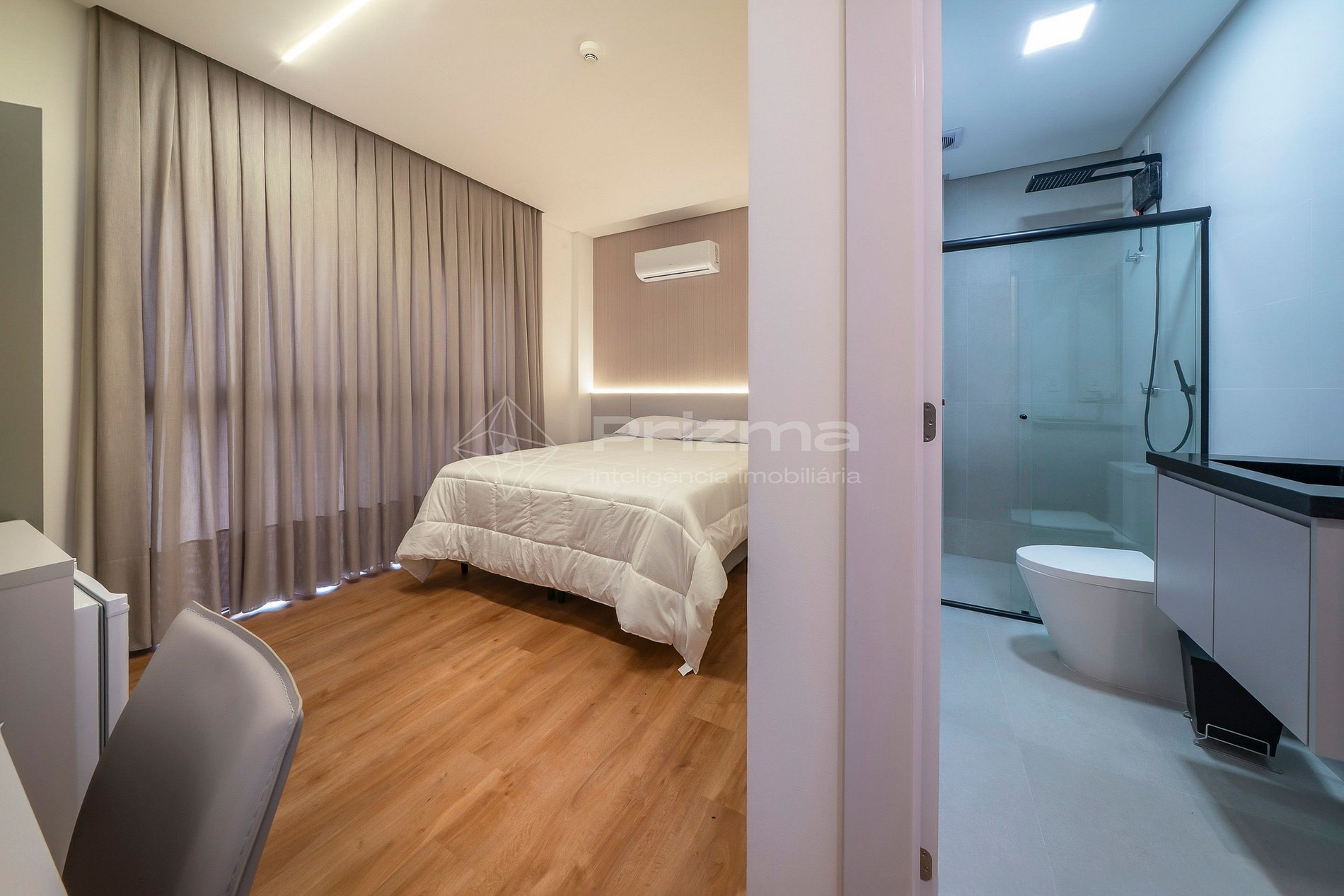 -Ambiente climatizado com ar-condicionado, TV smart e WI-fi;