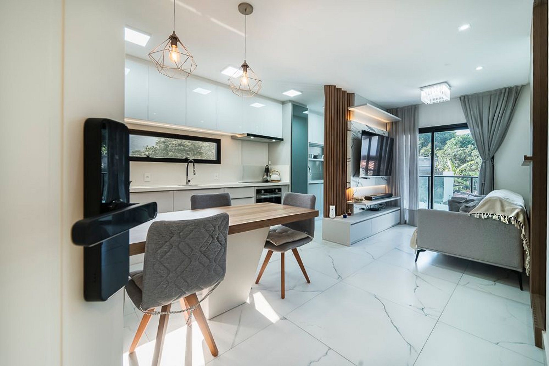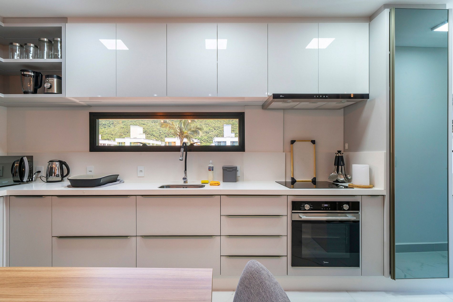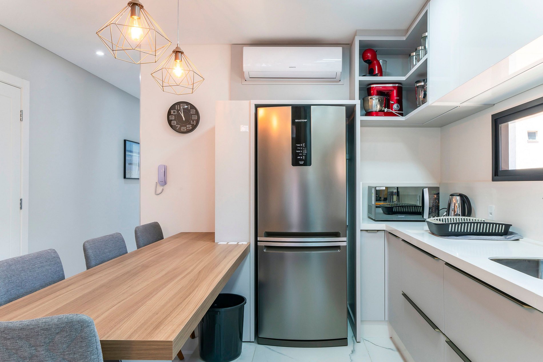 -Cozinha super equipada com fogão de indução, forno elétrico, chaleira elétrica, microondas, cafeteira, liquidificador, batedeira e outros itens;