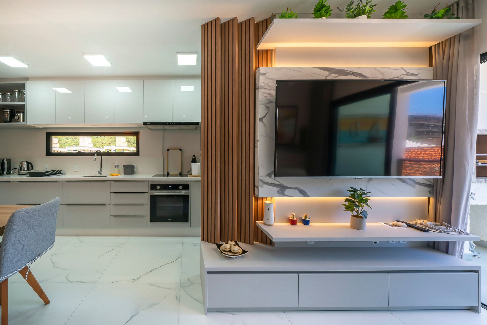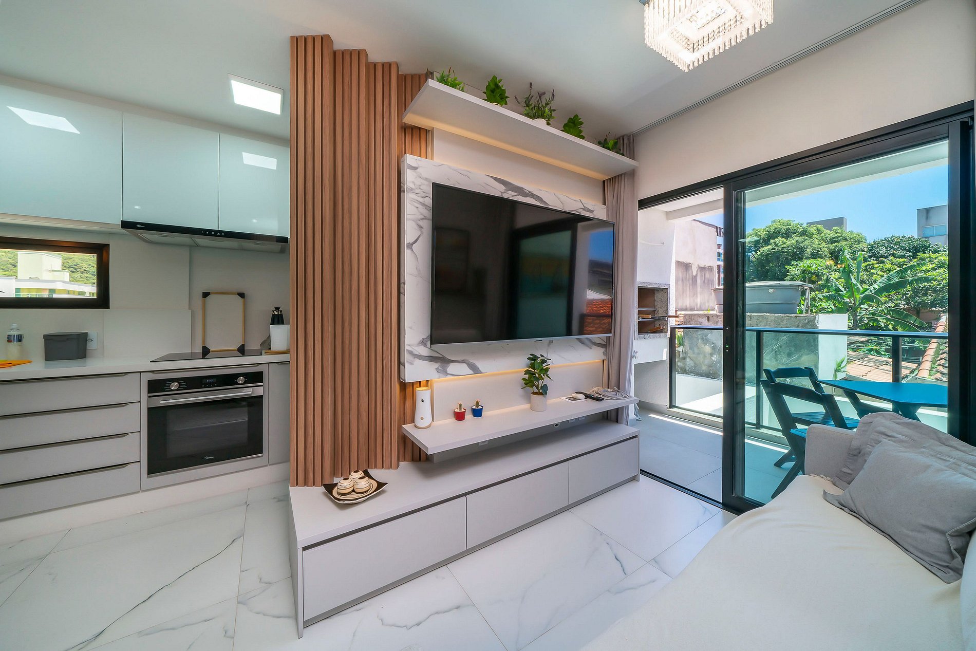 -Sala de estar com TV e ar condicionado;