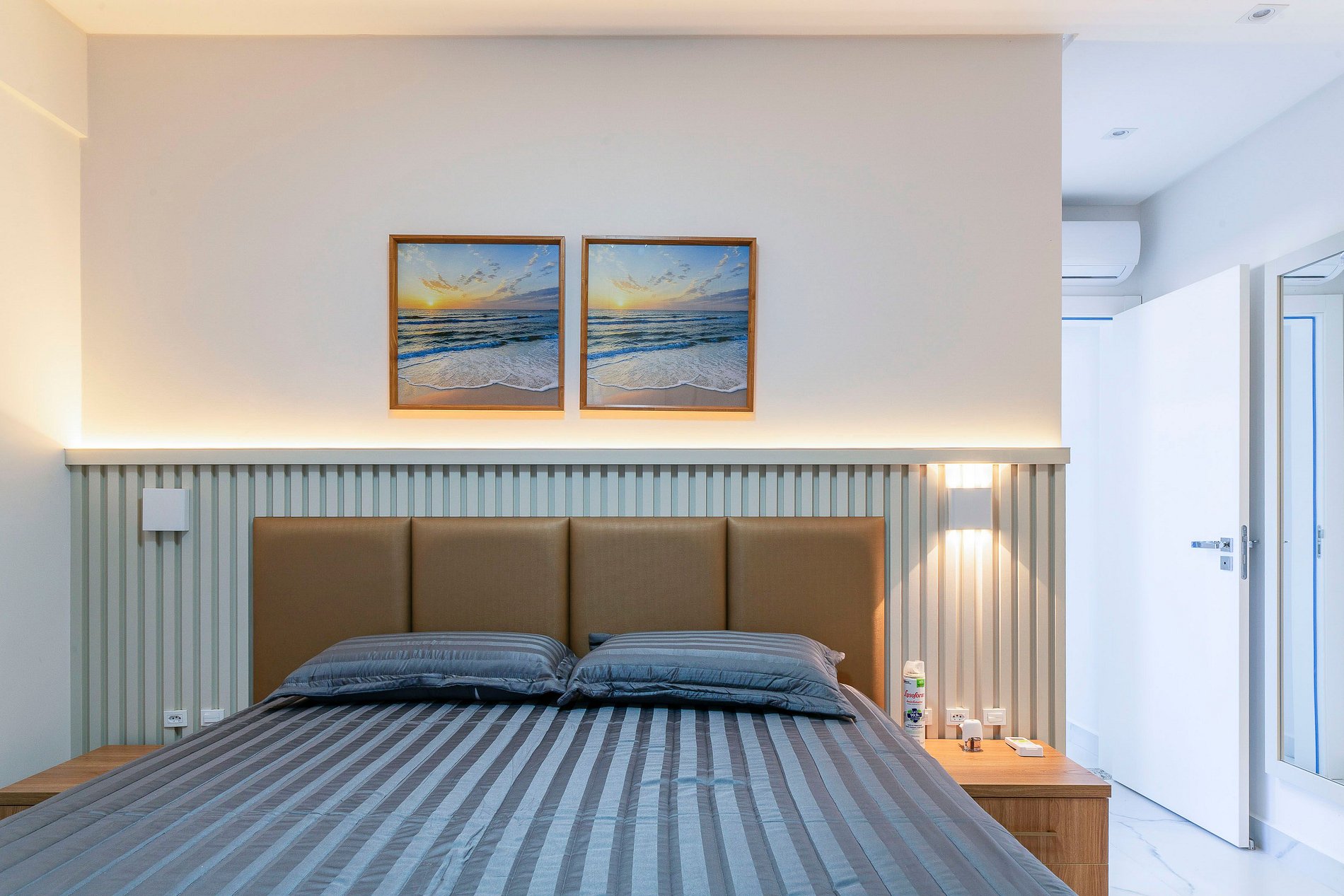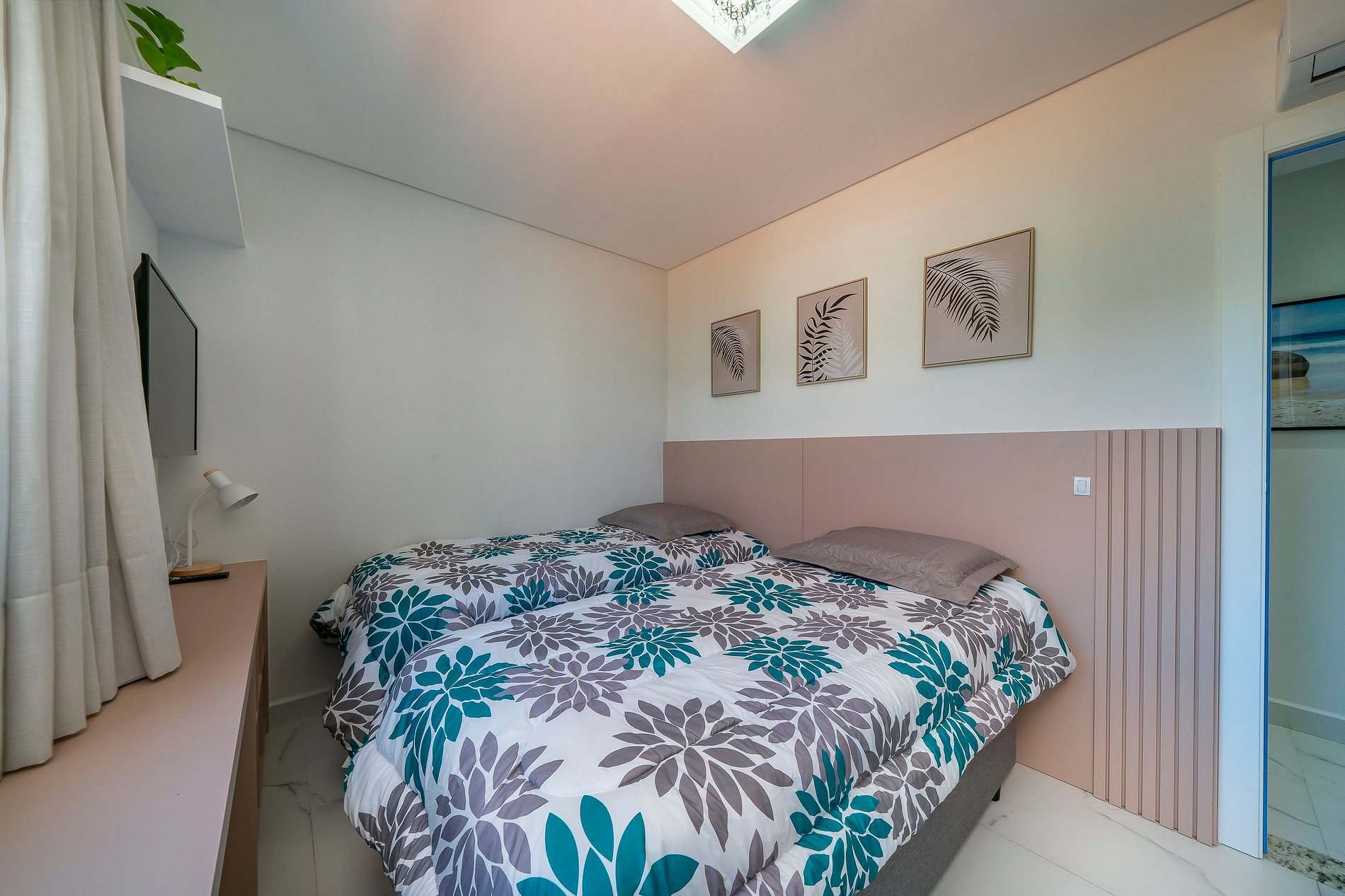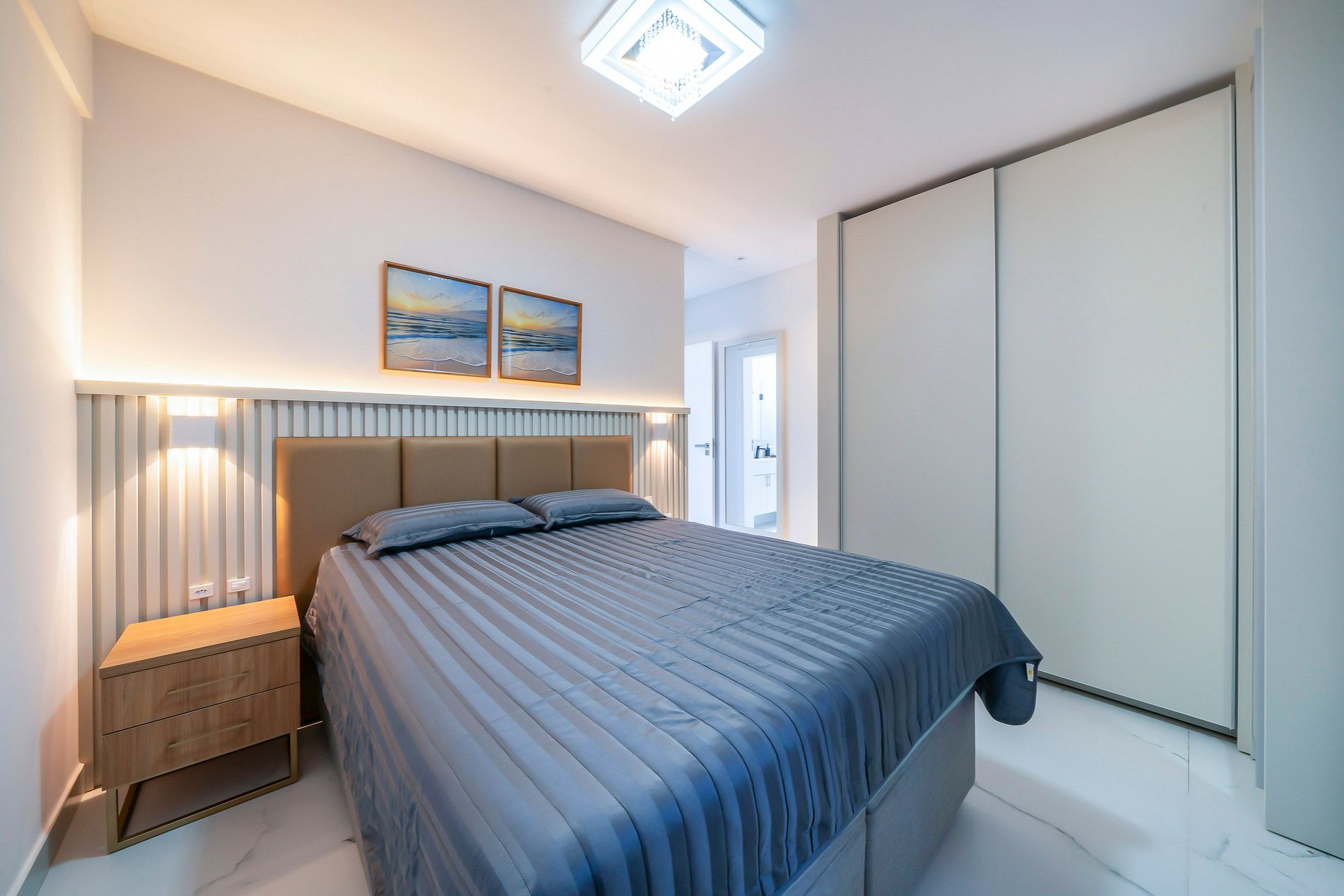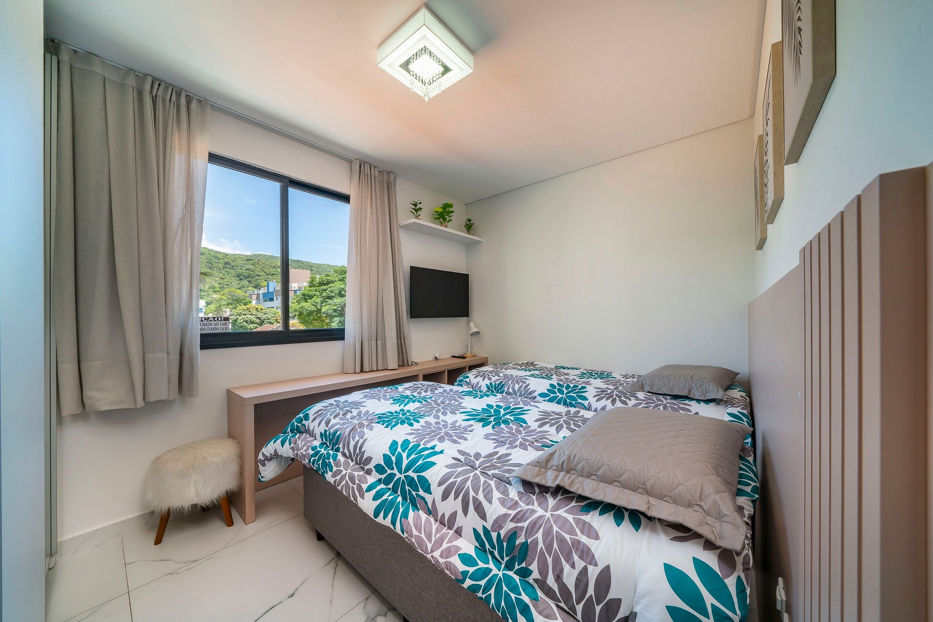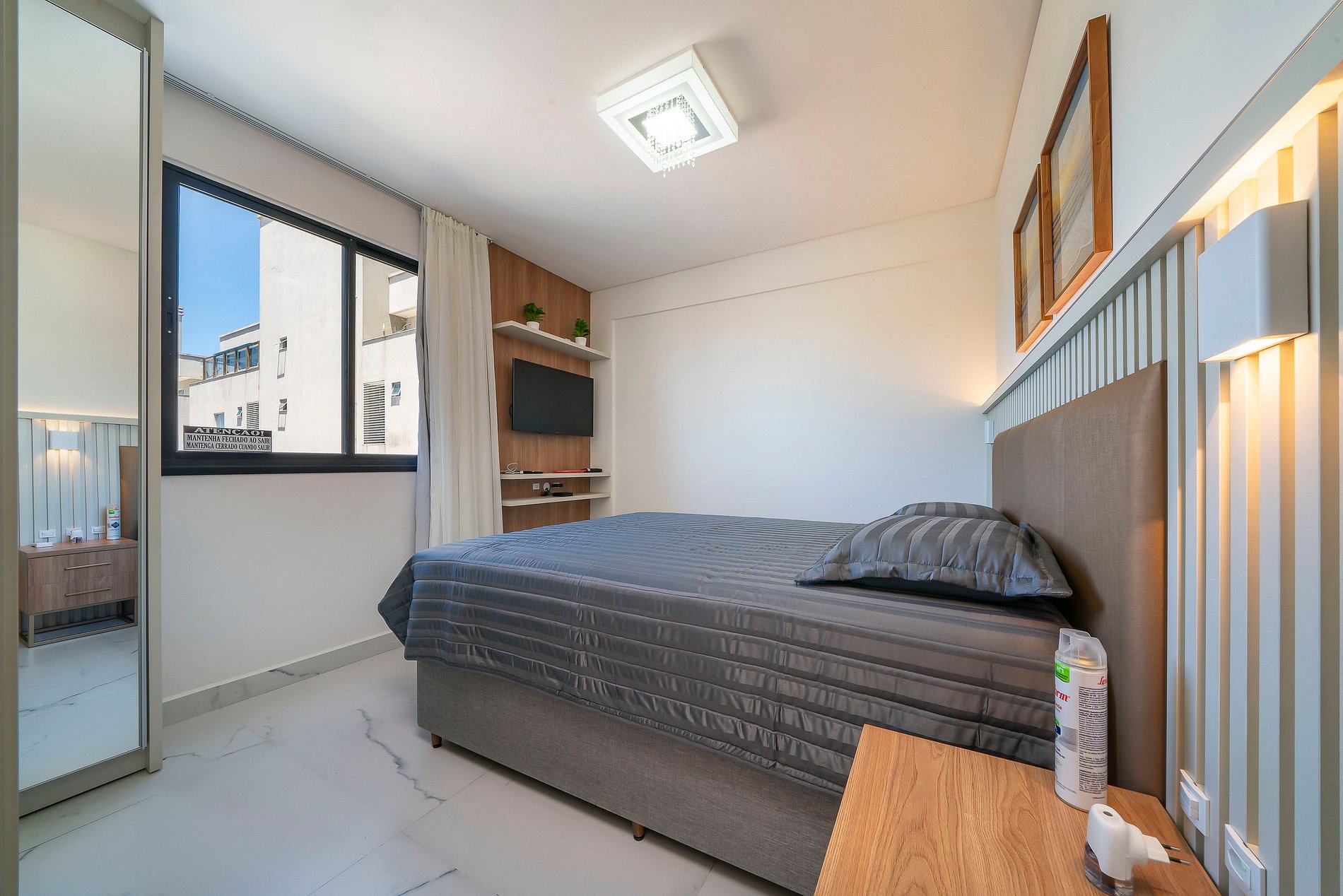 -Quarto 01: Suíte com cama de casal, TV smart e ar condicionado;