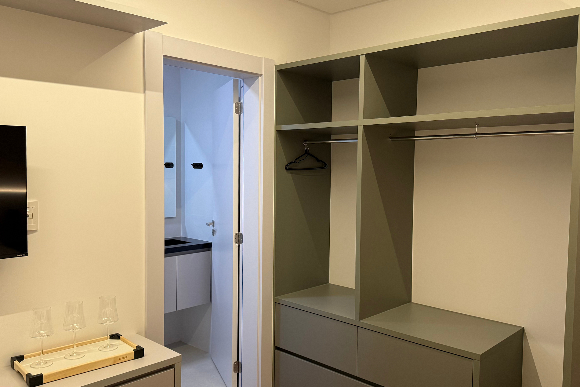 -Ambiente climatizado com ar-condicionado, TV smart e WI-fi;