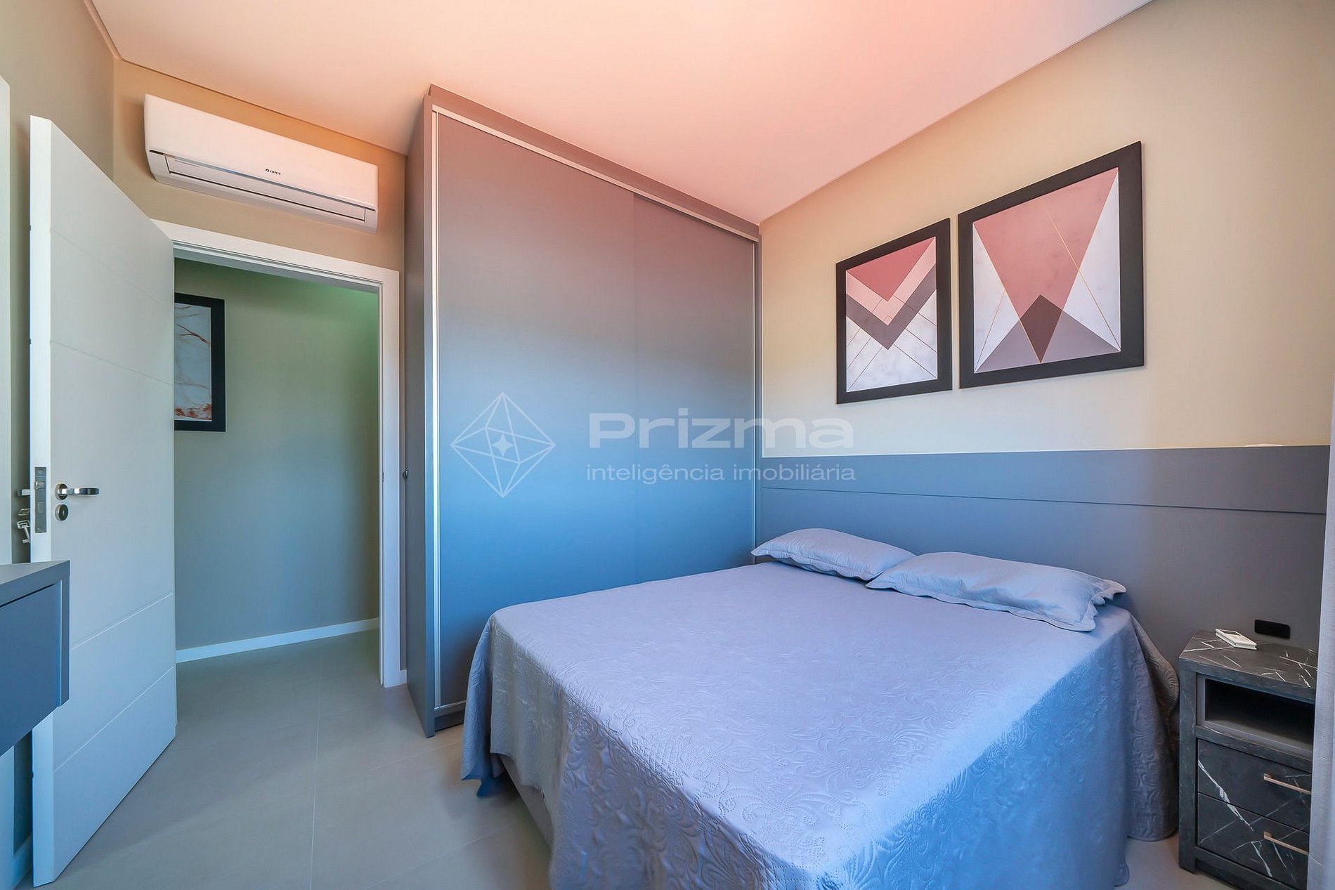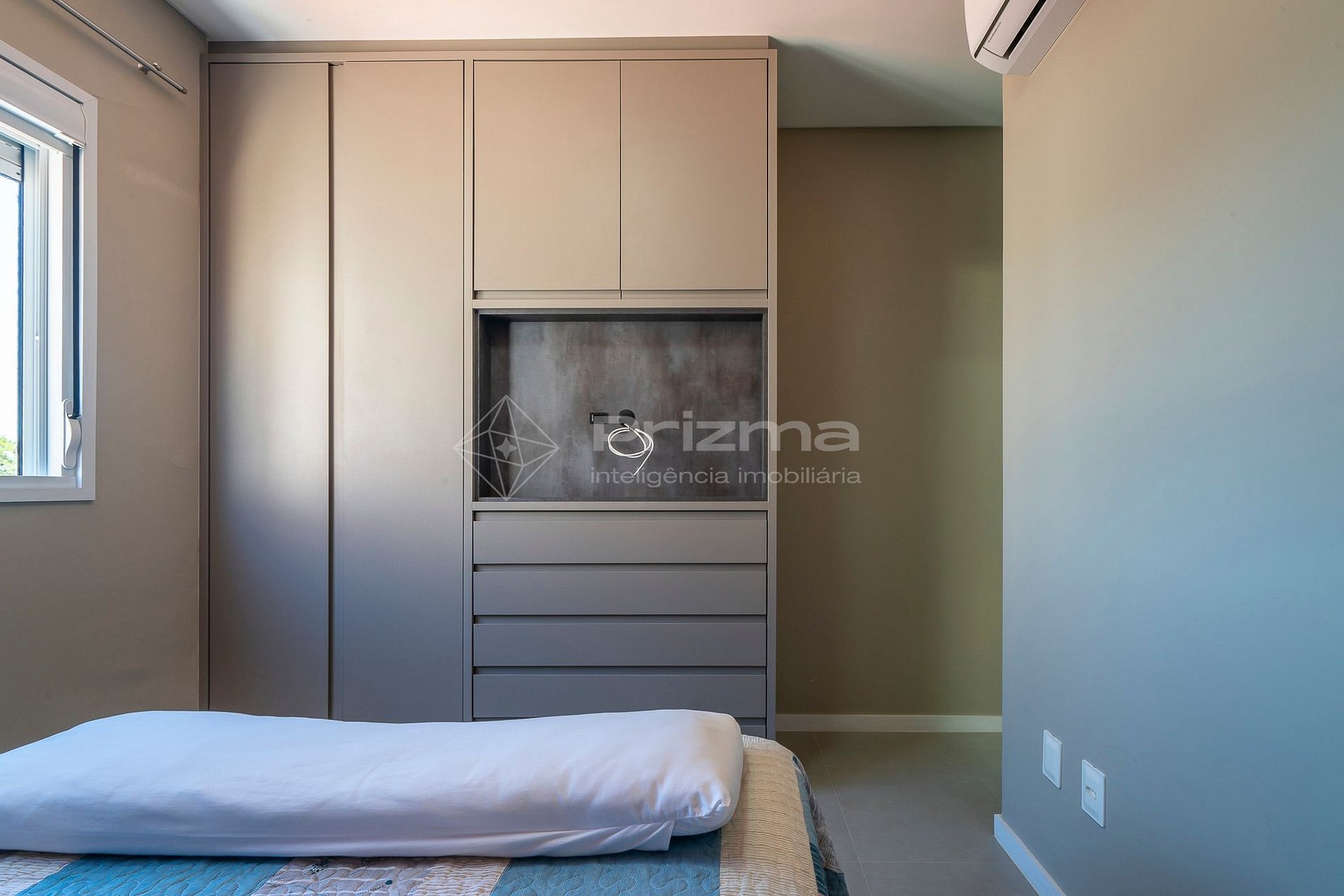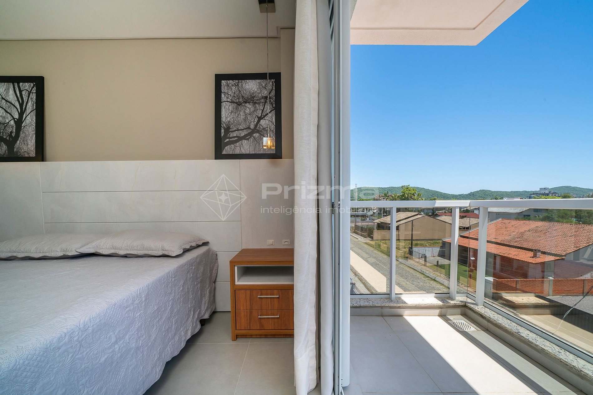 -Suíte 01: cama de casal, ar-condicionado e sacada com vista para a rua;