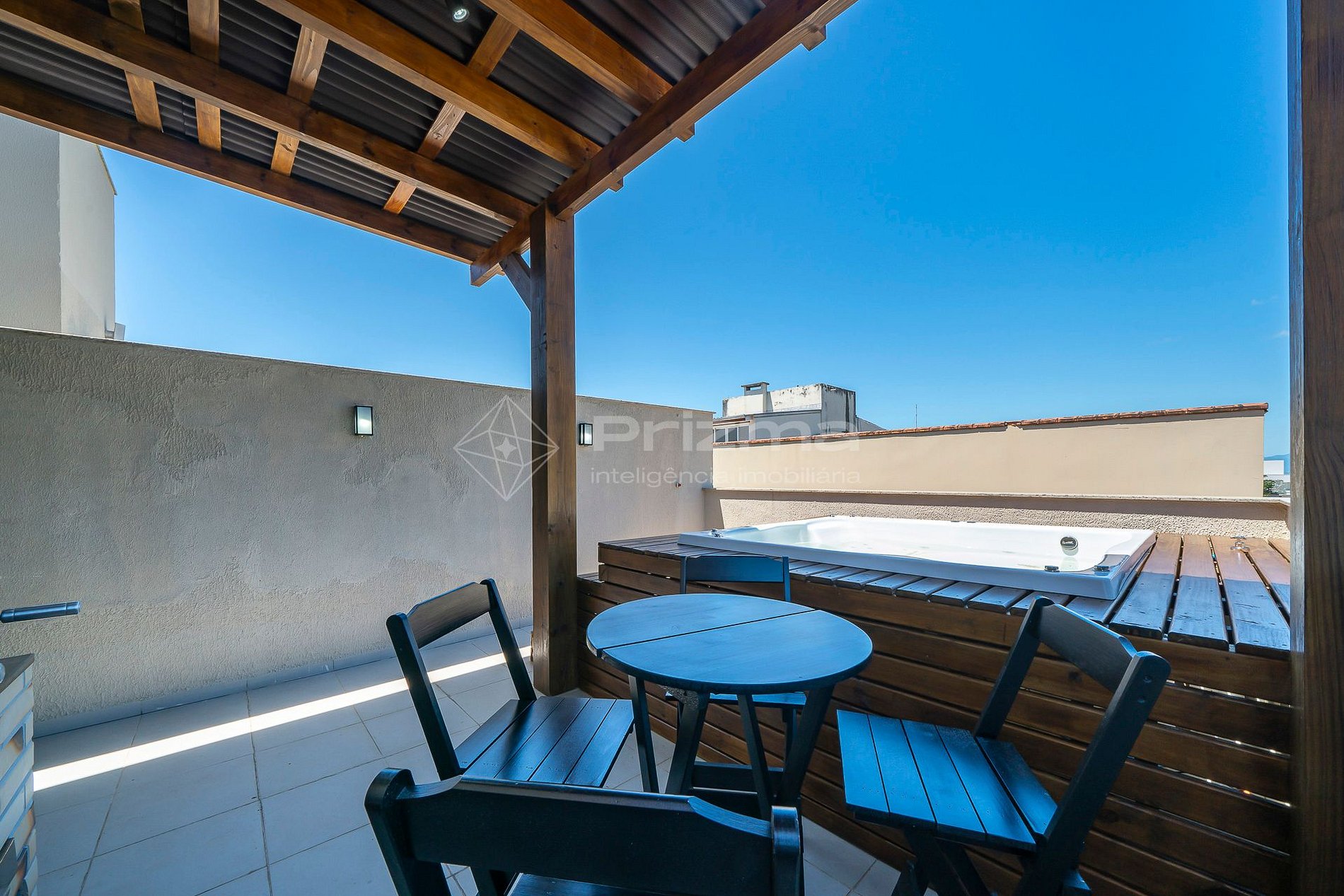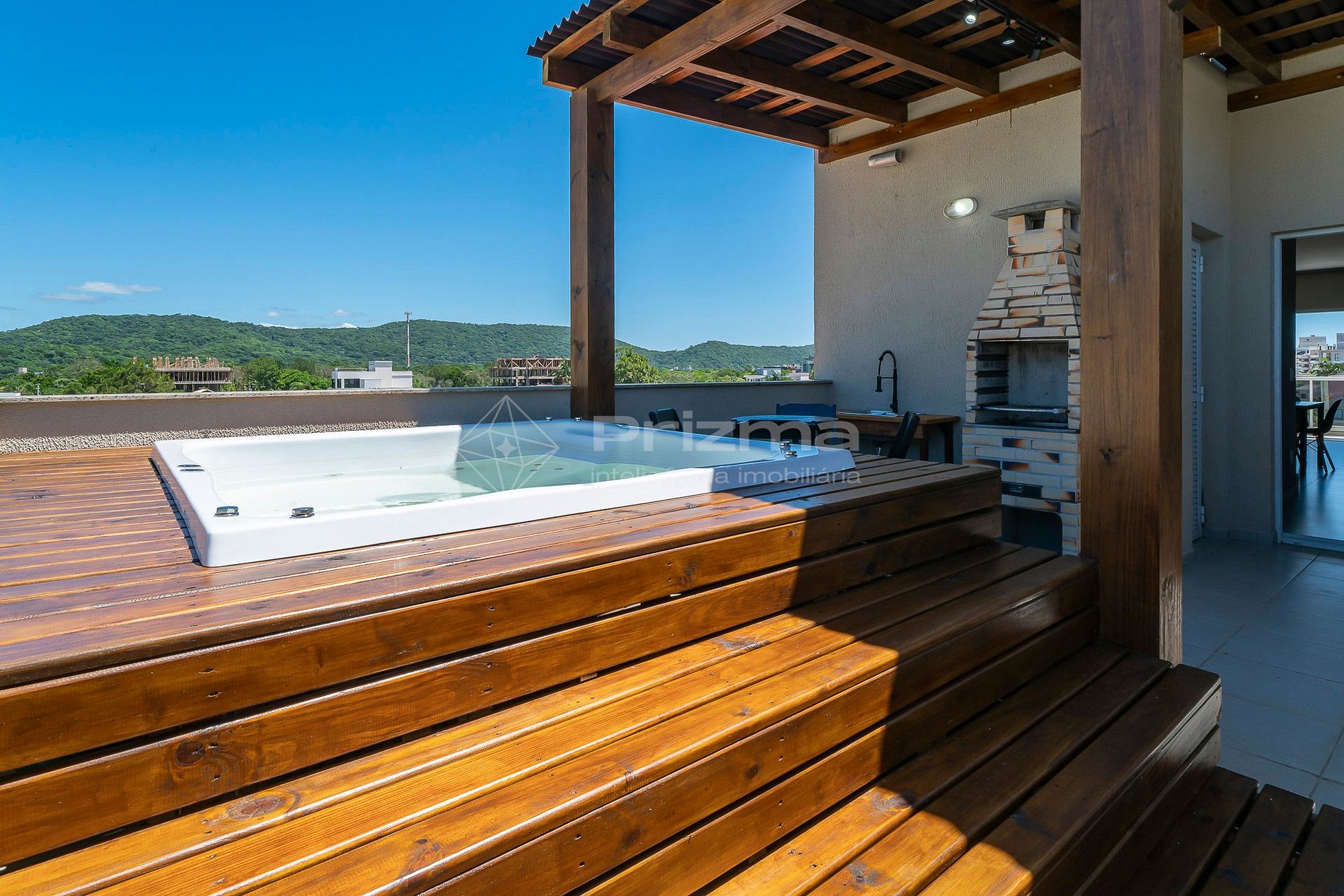 -Espaço gourmet externo com churrasqueira e jacuzzi aquecida privativa.