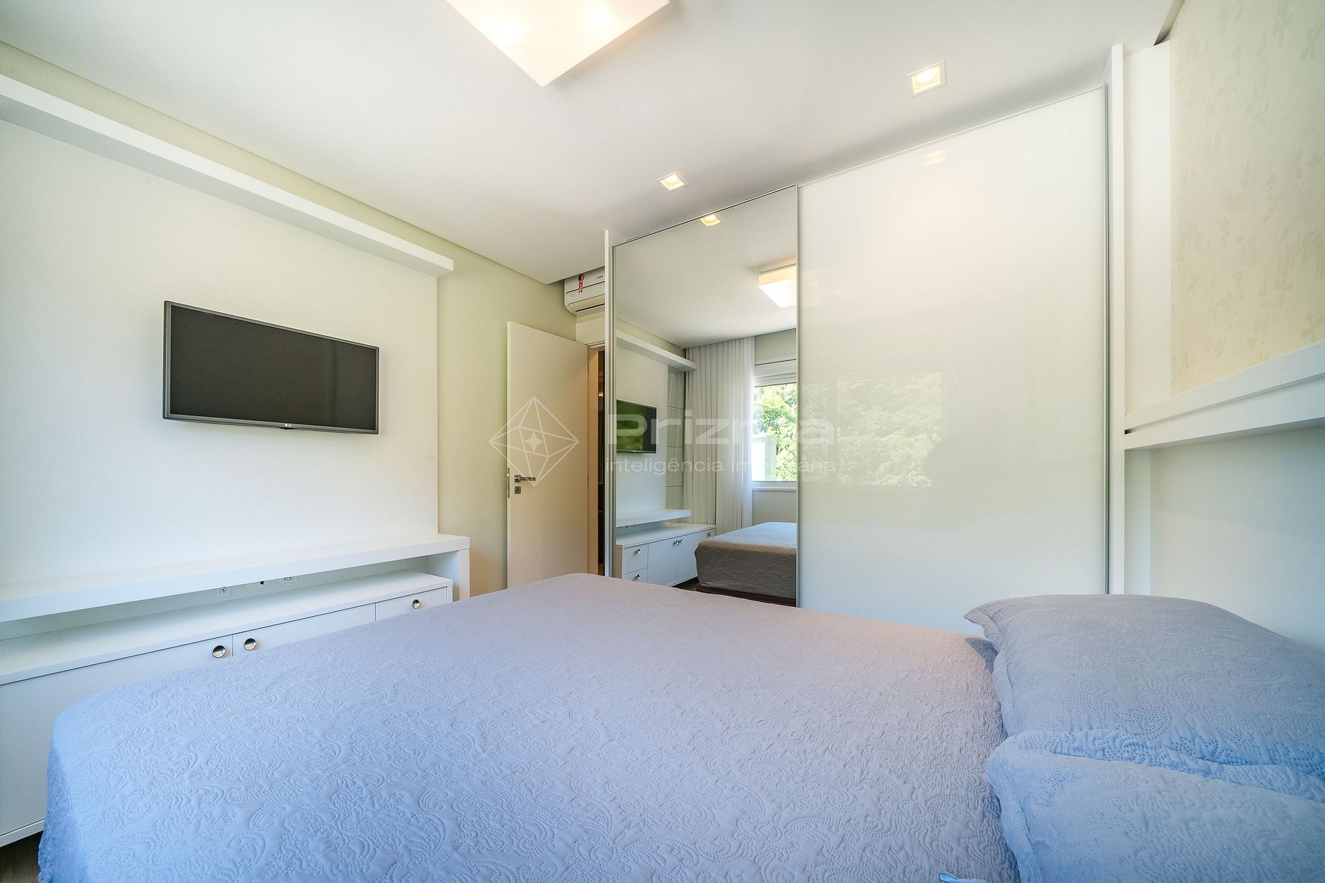-Quarto 01: Suíte com cama queen size, TV e ar condicionado;
